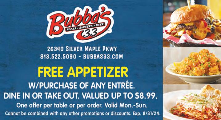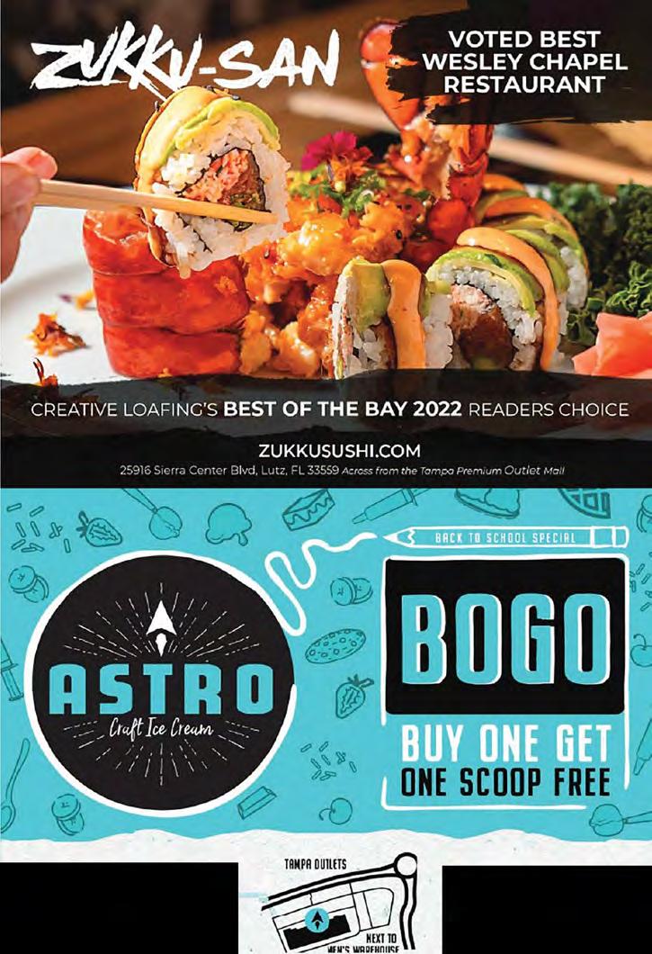 Creamery (17519 Preserve Walk Ln.) is open every day at 11 a.m. and stays open until 10 p.m. Mon.-Thur. until 11 p.m. on Sun. and until midnight on Fri. & Sat. For more info, call (813) 977-0024, visit ColdStoneCreamery.com or see the ad on pg. 42, where you’ll find this month’s Daily Store Specials. For special orders, call Sunny directly ay (813) 469-7954.