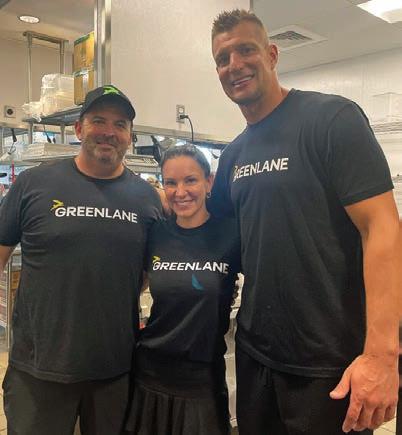 Although we have no word yet on what might replace Fazoli’s, construction is nearly com plete on the adjacent Greenlane Salads & Wraps (photo below), the healthy drive-thru restaurant of which former Tampa Bay Bucs and New England Patriots tight end Rob Gronkowski (far right photo above) is a partner and co-founder.