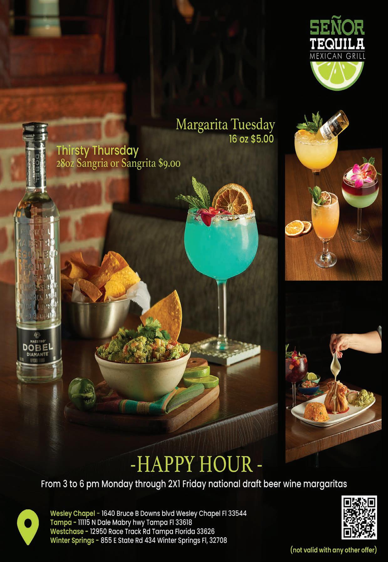 From 3 to 6 pm Monday through Friday • 2-for-1 draft beer, wine & margaritas