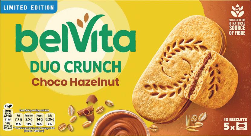 Belvita recently launched Belvita Duo Crunch Choco Hazelnut, a limited-edition product that combines chocolate, high bre and Belvita’s signature blend of ve wholegrains. Available to independent retailers until December, the new line of products comprises two Belvita biscuits sandwiched together.