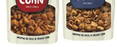 Available via wholesale and Amazon, Crunch Corn comes in three �lavours: Spicy Chilli, Sea Salt and Salt & Vinegar. It’s �ibre-rich and HFSS compliant, according to the supplier.
