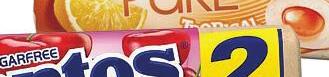 Mentos Duo Packs for Pure Fresh gum are two Mentos Pure Fresh rolls in a single wrap. They have an RRP of £1 and come in Fresh Mint, Cherry, Bubble Fresh and Tropical flavours.