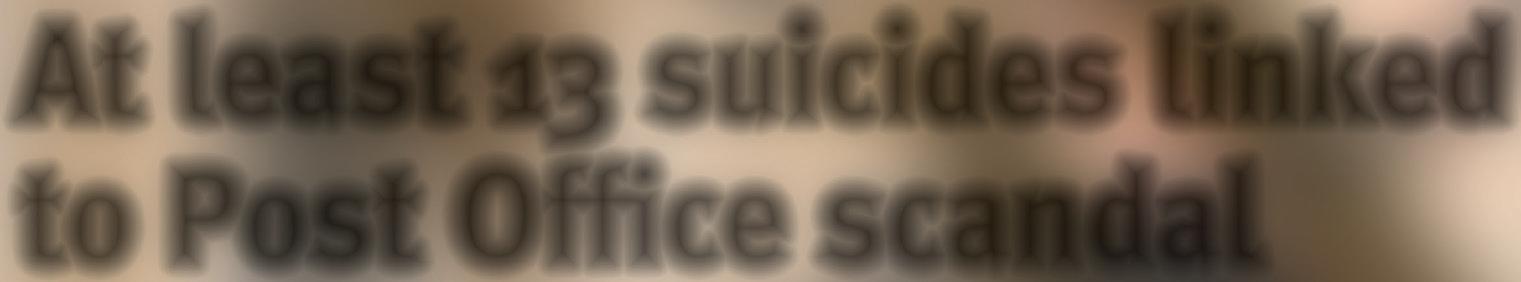 • First Post O ce Horizon inquiry report shows at least 13 suicides, 10 attempted suicides, plus mental breakdowns and alcoholism among the ‘many thousands’ harmed