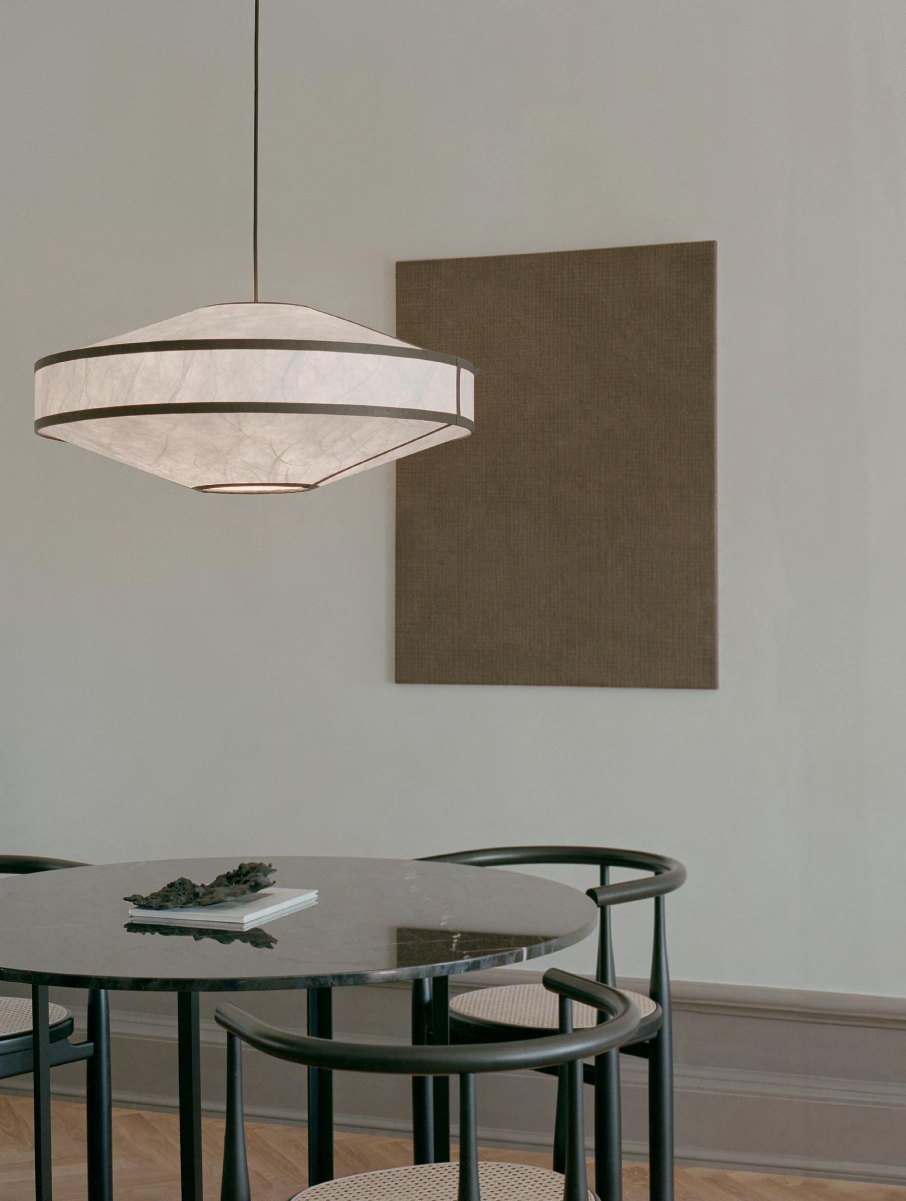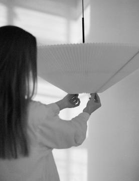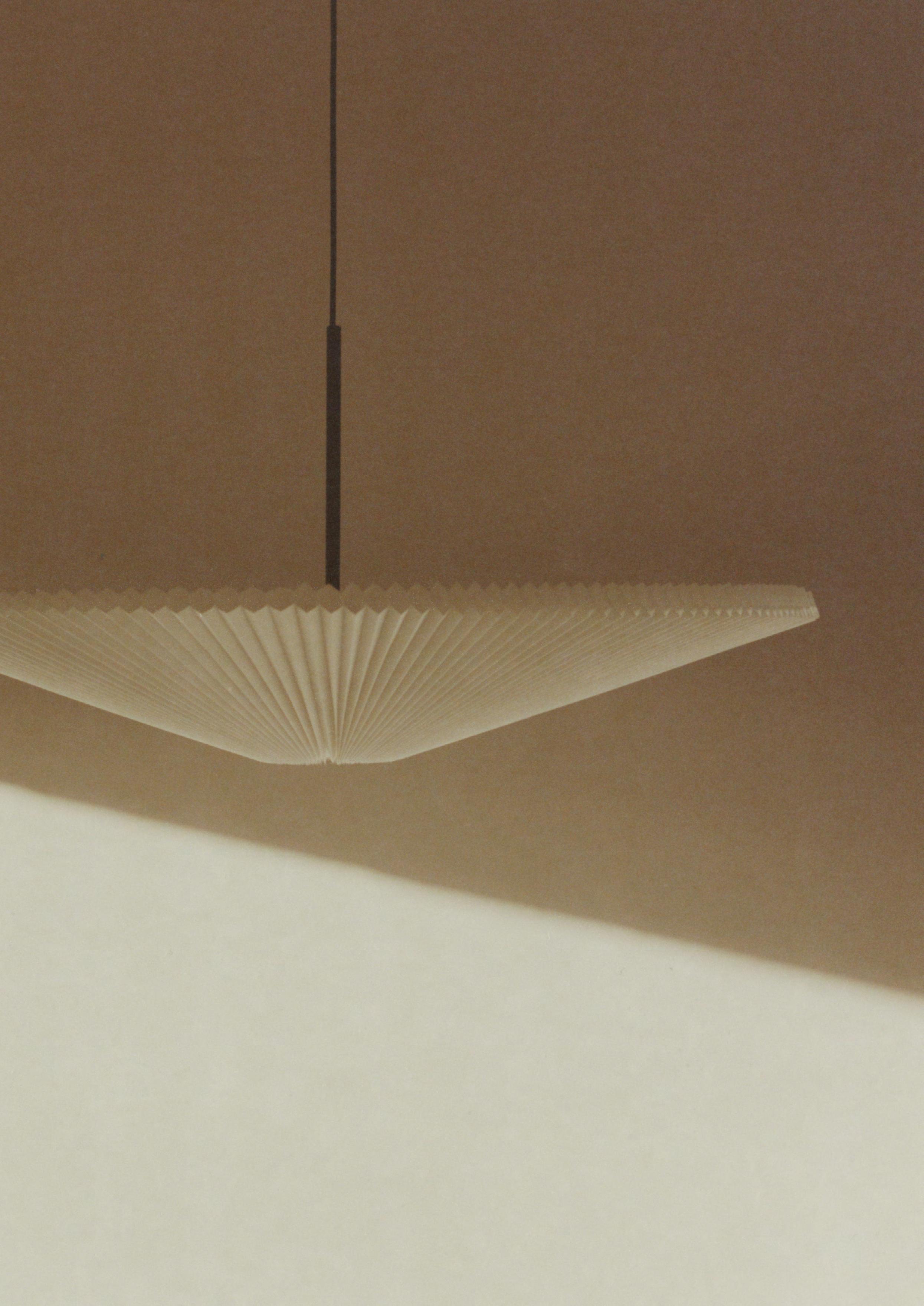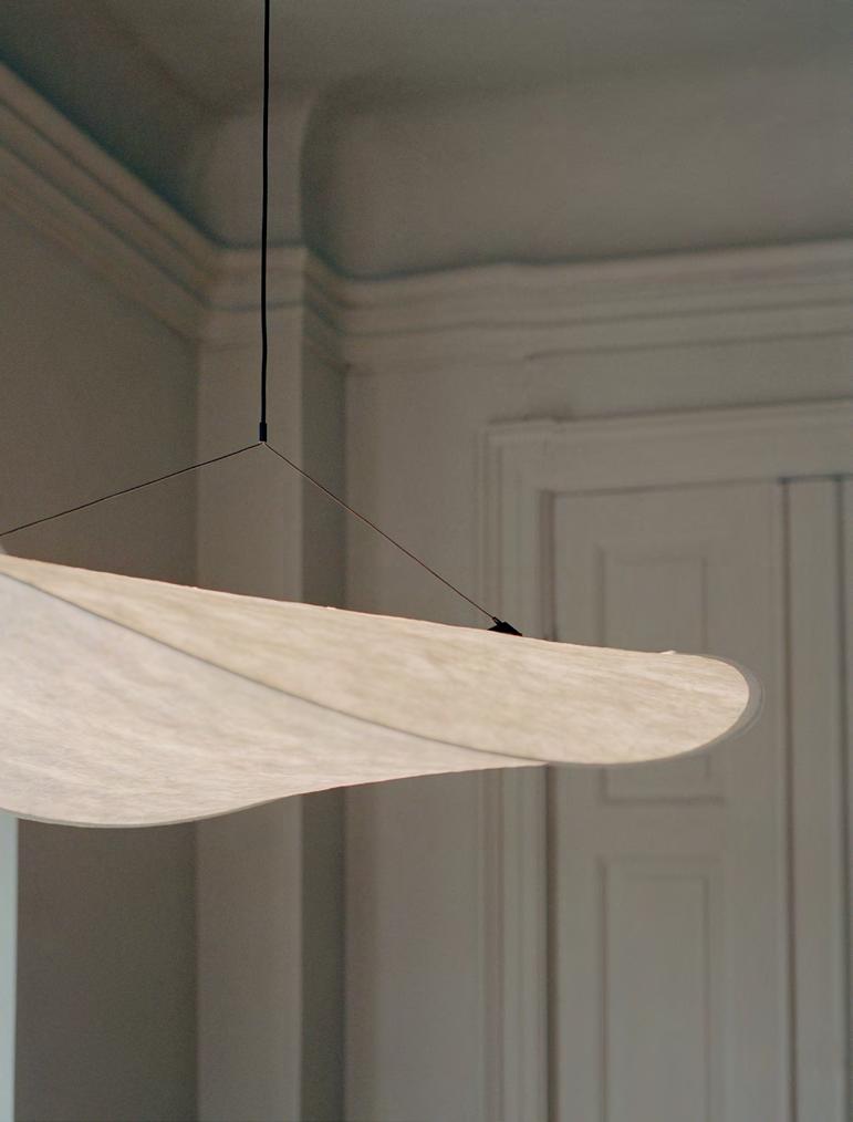 In their Tense series for New Works, designers Panter & Tourron explore aspects of material tension, giving life to airy and flowing shapes. The dreamy cloud-like shade of Tense softly diffuses the light and creates a sculptural feel that suits a wide range of architectural settings. When the light is on, the crinkled texture is accentuated in a delicate exchange of light and shadow.