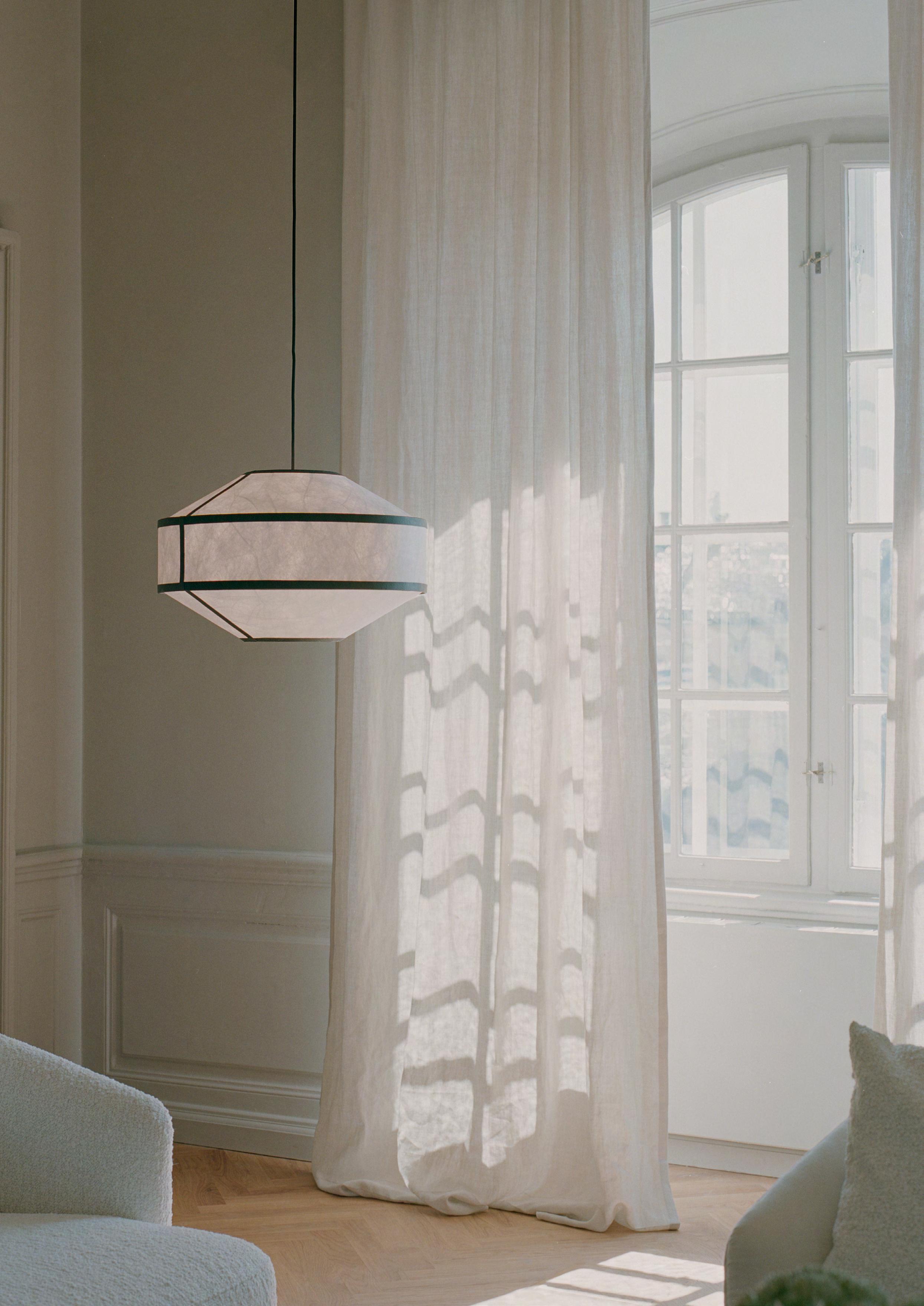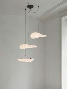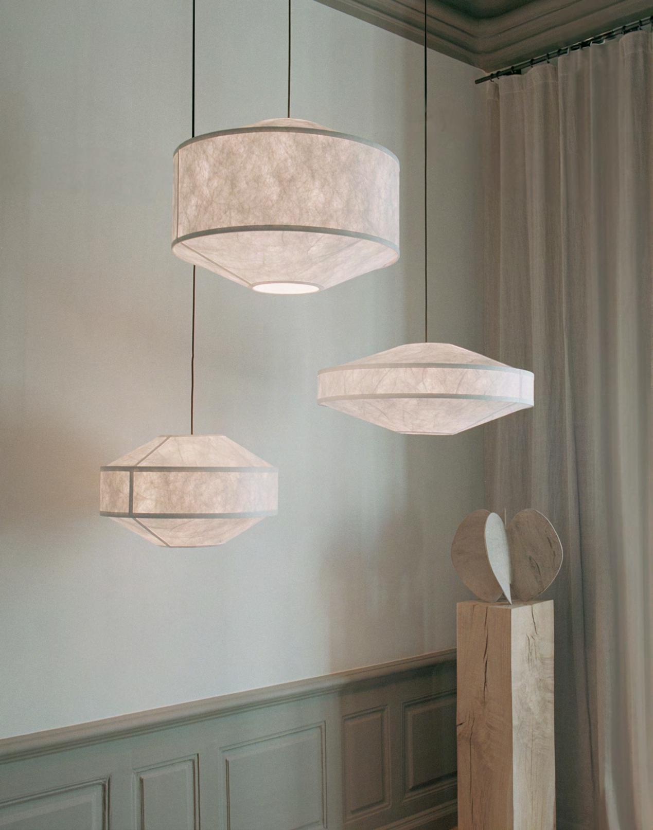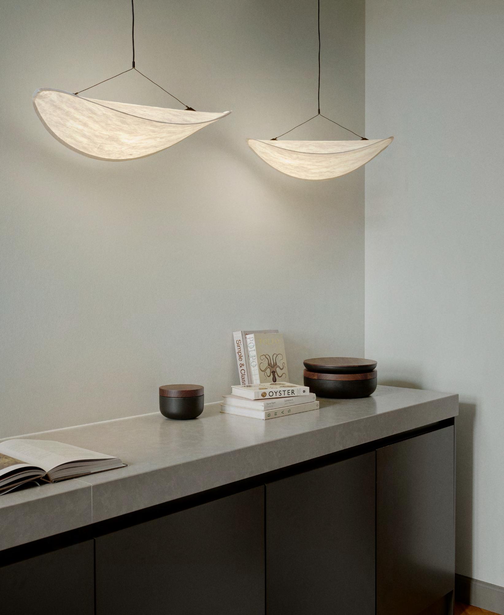 In their Tense series for New Works, designers Panter & Tourron explore aspects of material tension, giving life to airy and flowing shapes. The dreamy cloud-like shade of Tense softly diffuses the light and creates a sculptural feel that suits a wide range of architectural settings. When the light is on, the crinkled texture is accentuated in a delicate exchange of light and shadow.