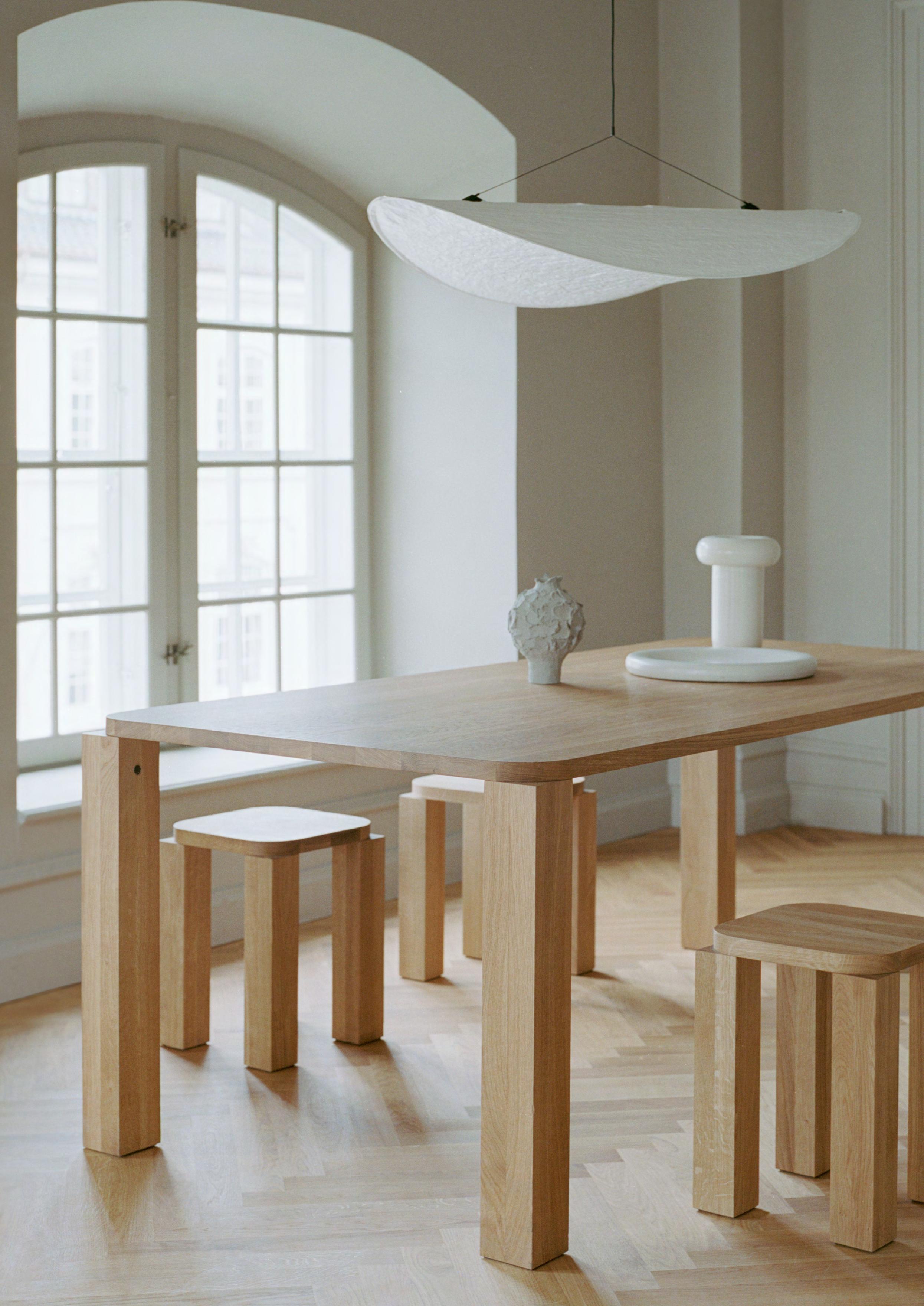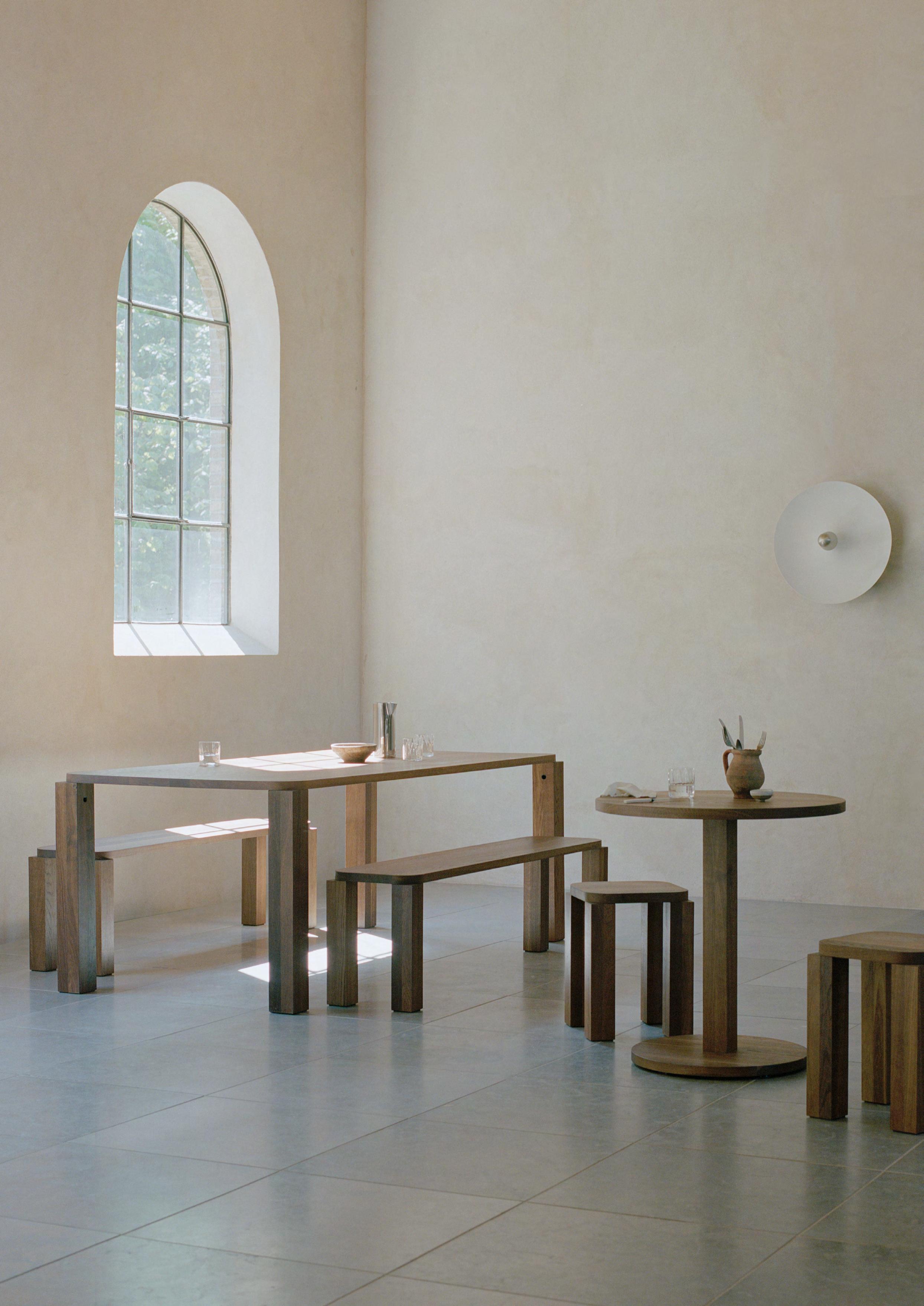Named after the mythical Titan condemned to hold up the heavens on his shoulders, the Atlas Series stands strongly with its solid legs supporting the spacious seats and tabletops. The meeting and contrast between the legs and the tabletop is central to the design, where each element exaggerates the other giving Atlas its distinct presence and brutalist feel.