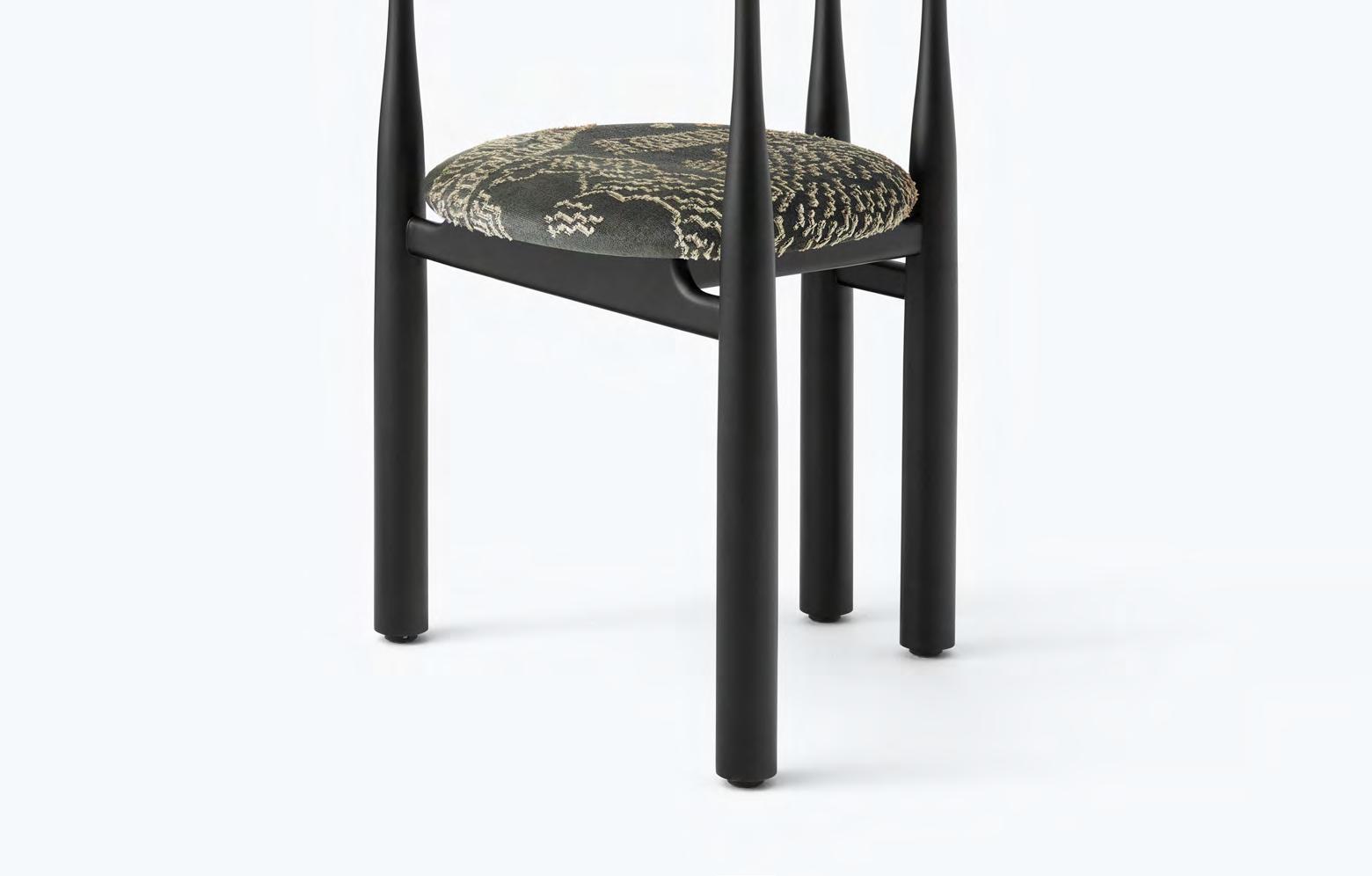 Black painted beech, upholstery, shown w. Dedar Tiger Mountain 003