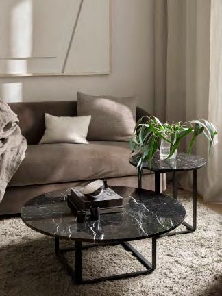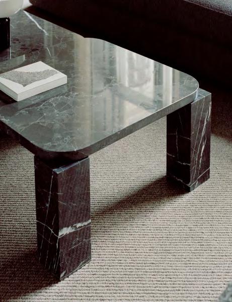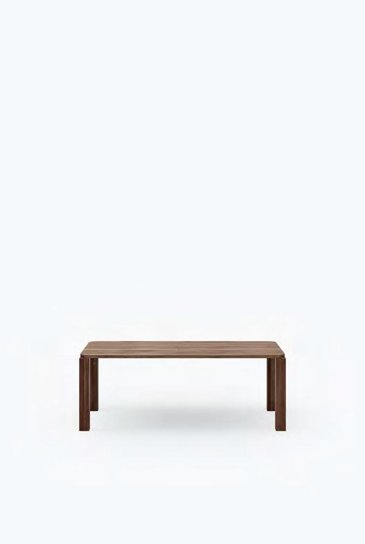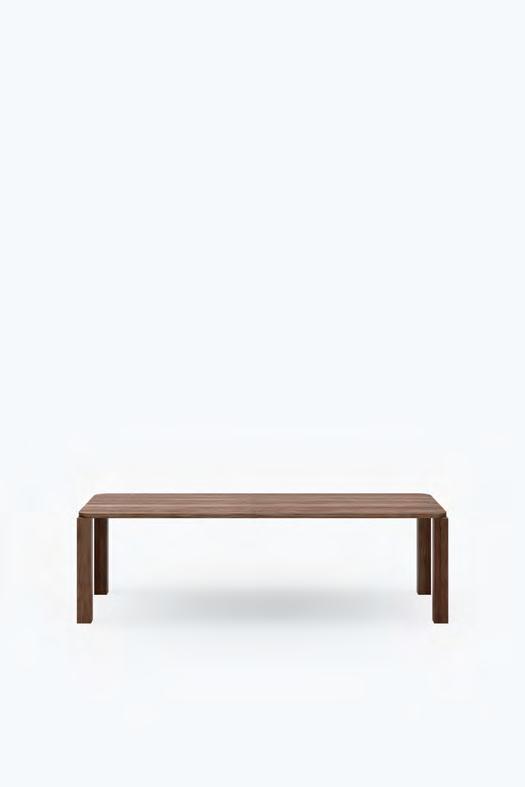 THIS PAGE Atlas Coffee Table 82x82, Unfilled Travertine 0PPOSITE PAGE Atlas Dining Table 250x95, Atlas Bistro Table, Fumed Oak