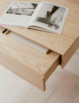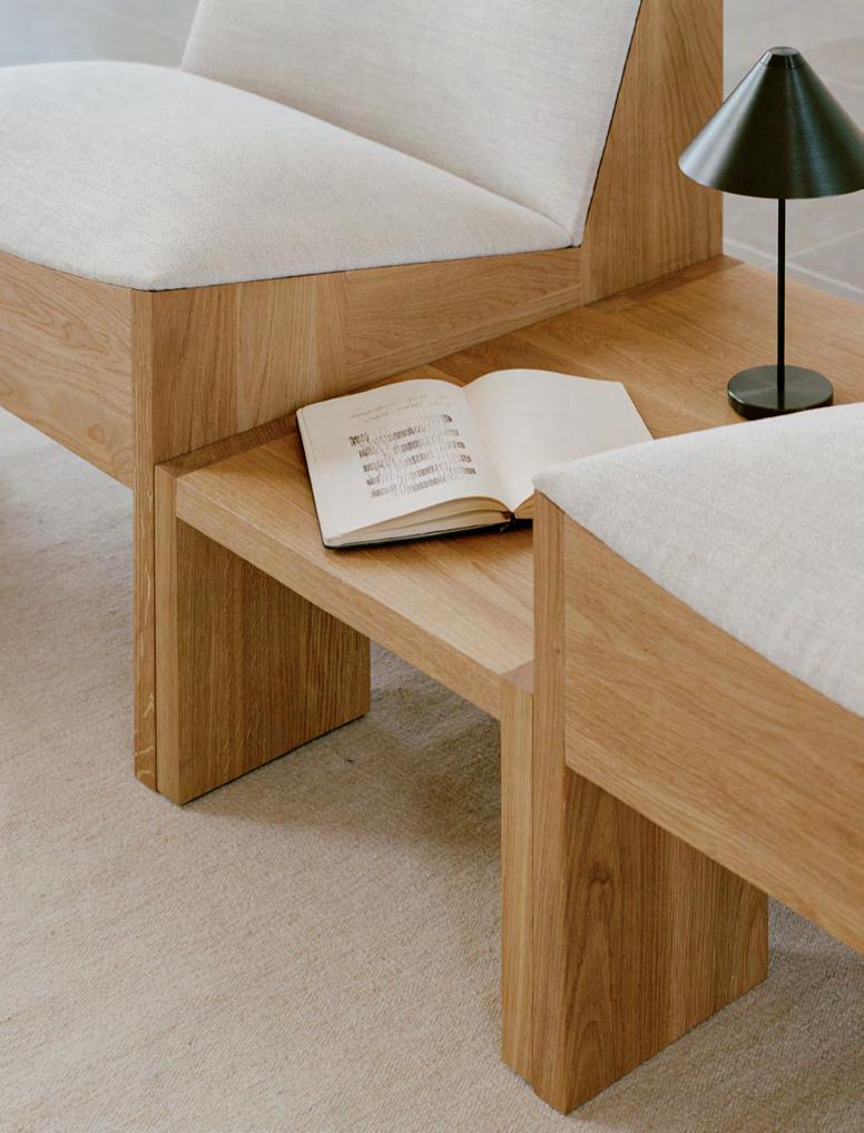 Solid oiled oak, upholstery, shown w. Sacho Moss 017