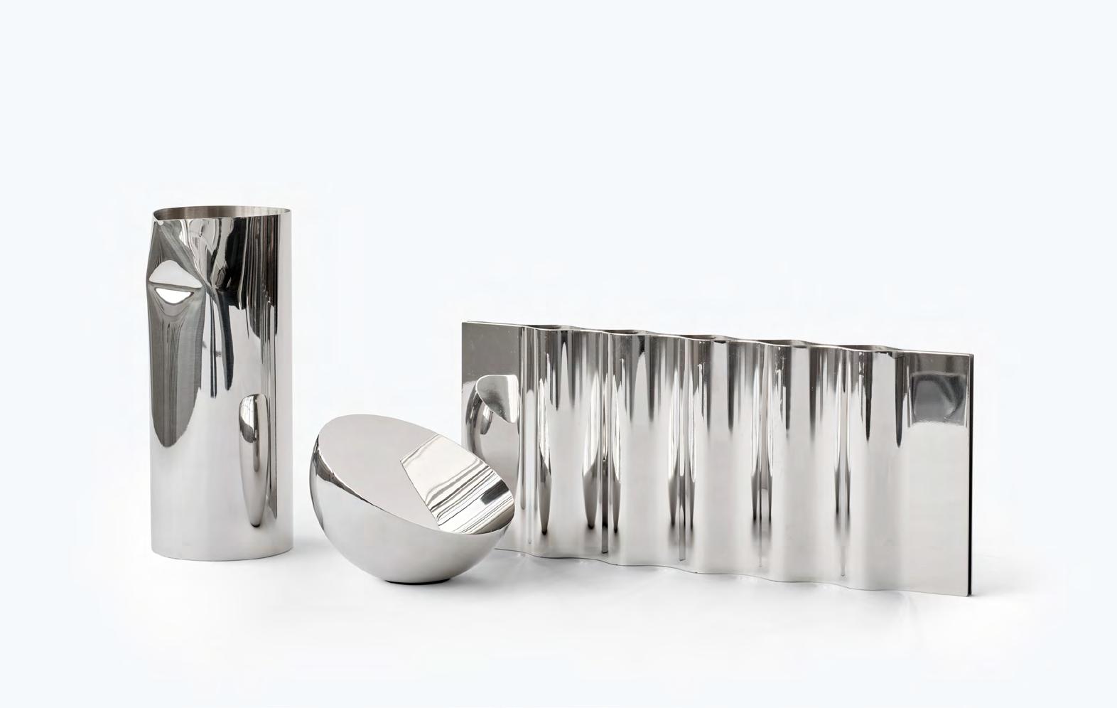 The New Works Silvery Line is a growing collection of tabletop items that combine everyday functionality with a sculptural touch. In continuation of the Modernist pursuit of undecorated elegance, these small objects highlight the art of reimagining shapes with simplicity in form and function. From this shared aspect, each item come into its own through the designer’s mark, expressing a unique character and purpose.