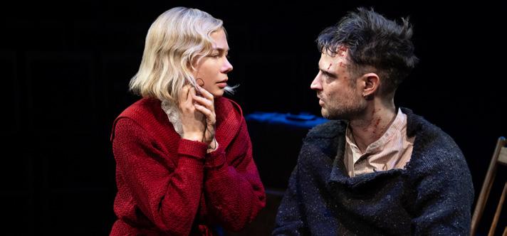 Director Thomas Kail (Sweeney Todd) brings a different twist to the play for several reasons: Mat Burke (Sturridge) is a more violent person then originally written by O’Neil; Anna (Michelle Williams) is older than the book originally had Anna portrayed. These two big differences never hurt the show, in fact Burke is more interesting here than the past “Anna Christie” plays that have been produced.