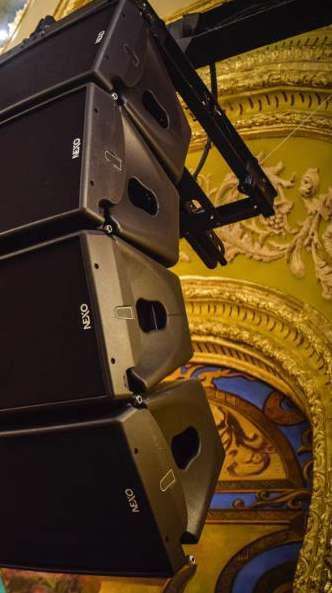 Dans le petit théâtre, de petites grappes de GEO M6 de NEXO sont suspendues à jardin, centre et cour au-dessus de la scène. Des PS10 servent de haut-parleurs latéraux et des ID24 sont ici aussi installés sous les balcons pour assurer une couverture égale du public partout dans la salle. Dans les deux théâtres, l’amplification et le traitement sont assurés par trois racks d’amplificateurs NXAMPMK2 de NEXO.