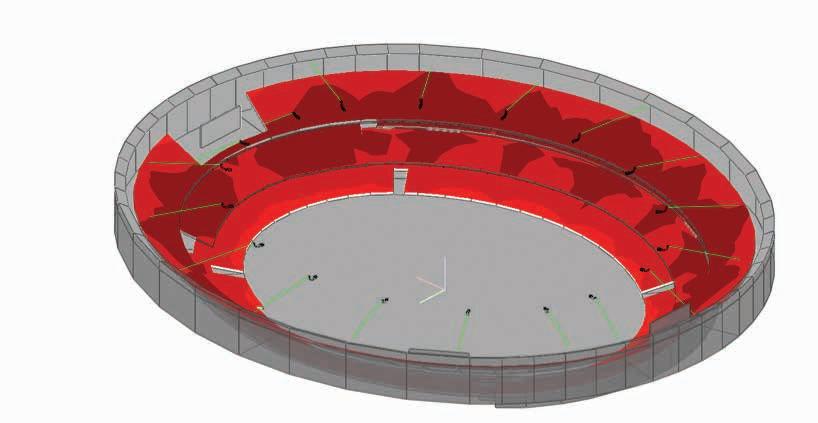 NEXO enjoys close collaboration with the world’s leading experts in electro-acoustic simulation programming. NS-1 models the radiating behaviour of the speakers by spatially sampling them into a large number of monopoles and dipoles. In ever y mesh point of the venue’s surfaces, the contribution of each one of the speaker monopoles is calculated for the frequency band of your choice. The simulation results are mapped to the surfaces, giving a 3D representation of the SPL coverage.