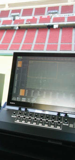 Split to cover the upper and lower parts of the stadium, the system uses 40 clusters of NEXO cabinets for the stands; flown from the roof, 7x S12s are directed at the upper levels, while a separate array of 6x S12s faces directly down towards the lower levels. Another 32 cabinets of S12 are used for fill at ground level. RS18s are flown, 27 in total. Any loudspeaker in any cabinet can be changed in 30 minutes, supplementing the protection afforded by the NEXO NXAMPs.