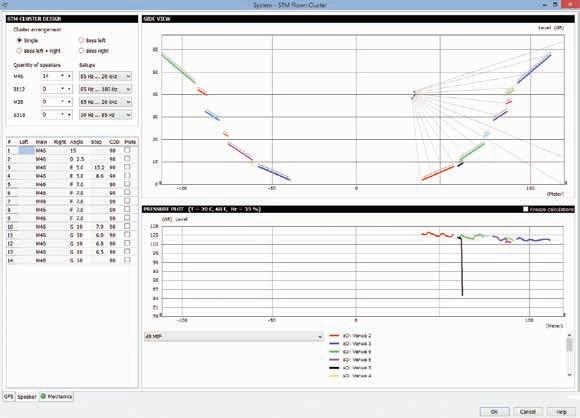 Once the geometry is defined, loudspeakers can simply be dragged and dropped into the project, and configured into flown or stacked clusters.