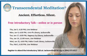 Karen & Herb Bandy, Allan Byxbe, Certified Teachers Jacksonville@TM.org • 904-375-9517 Regine de Toledo, Certified Teacher StAugustine@TM.org • 904-826-3838