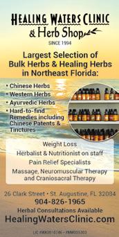 Healing Waters Clinic & Herb Shop 26 Clark St, St. Augustine 904-826-1965 • HealingWatersClinic.com MA0010746 MM005595
