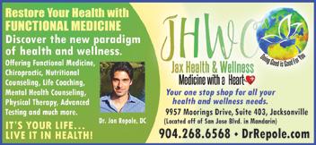 Dr Jon Repole, DC, CFMP 9957 Moorings Dr, Ste 403 Jacksonville (Mandarin) 904-268-6568 • DrRepole.com