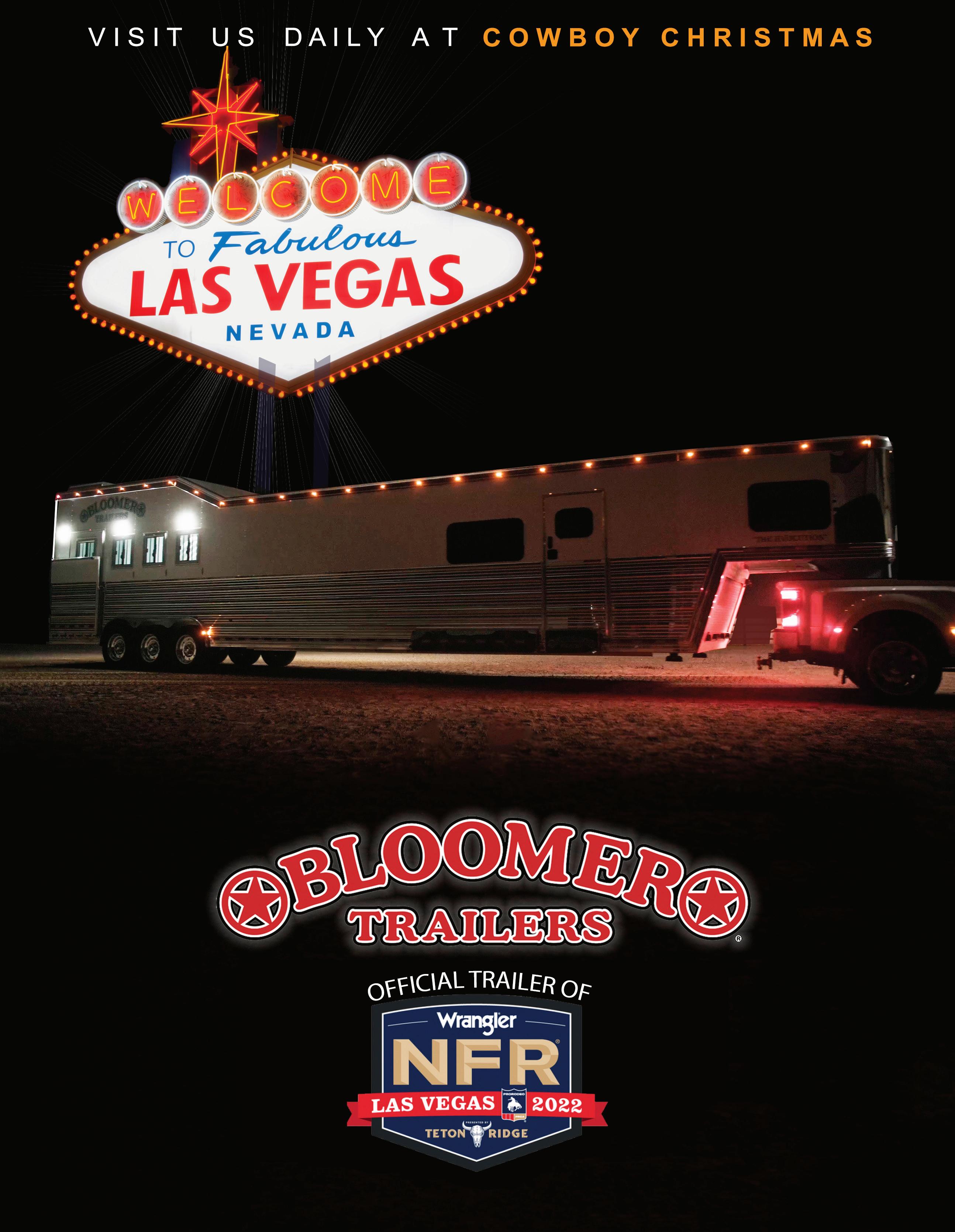 FIRST EVENT: BAREBACK RIDING SATURDAY, DECEMBER 10, 2022 NEW YORK-NEW YORK HOTEL & CASINO HOME OF BAREBACK RIDING Sponsored by: WORLD STANDINGS 1. Jess Pope .................... $316,470 2. Leighton Berry ................ $242,091 3. Kaycee Feild .................. $240,009 4. Cole Reiner ................... $215,429 5. R.C. Landingham .............. $211,720 6. Tim O’Connell ................. $201,354 CONTESTANT Season Earnings 1st GO 2nd GO 3rd GO 4th GO 5th GO 6th GO 7th GO 8th GO 9th GO 10th GO Stock Score NFR Place Stock Score NFR Place Stock Score NFR Place Stock Score NFR Place Stock Score NFR Place Stock Score NFR Place Stock Score NFR Place Stock Score NFR Place Stock Score NFR Place Stock Score NFR Place 13 Cole Reiner Buffalo, WY $215,429 182 83.5 157 83 145 83.5 5 185 89 1 188 84 138 85.5 110 79 99 76 133 85.5 4/5/6 169 749.0/9 7 14 Jess Pope Waverly, KS $316,470 143 87 2 156 85 4 190 86.5 1 189 85.5 4/5/6/6 191 88 2 165 85 104 89 1 151 87 2/3/4 121 85.5 4/5/6 137 778.5/9 1 17