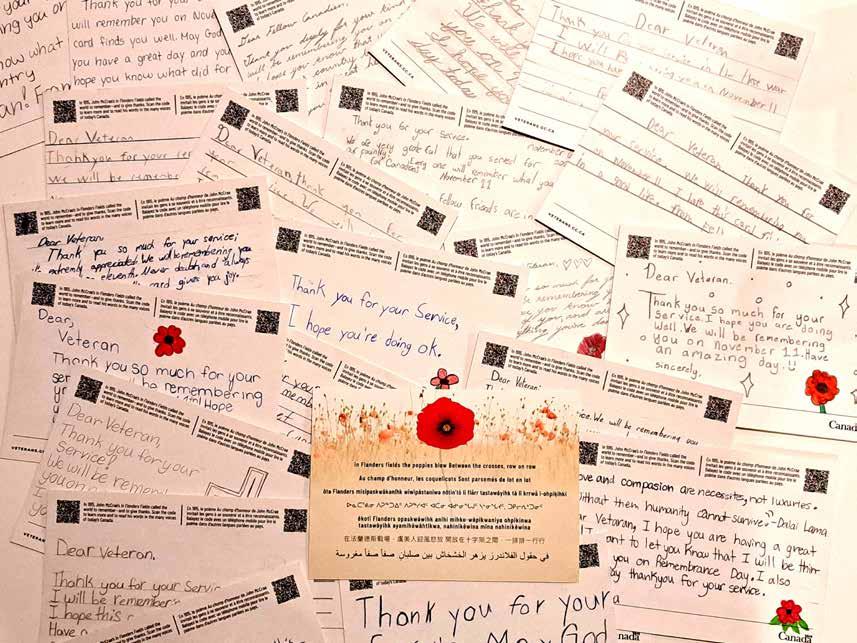 The Grade 6 students at Holy Cross School in Kemptville prepared a special Thank You to the members of the Kemptville Legion last weekend. In an initiative which was the inspiration of their Teacher, Melanie Stratton, each of the children wrote a special postcard, thanking the veterans for their service to Canada and their community. The postcards were presented to the Legion membership during their annual Remembrance Day Dinner last Saturday evening. A collage of the students’ postcards