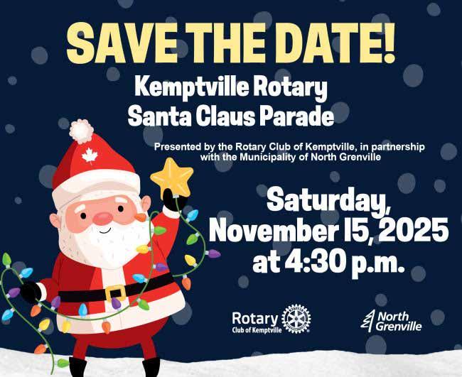 The lights, the music, the magic - it’s almost parade time again! The Rotary Club of Kemptville, in partnership with the Municipality of North Grenville, is thrilled to invite everyone to the 2025 Kemptville Santa Claus Parade on Saturday, November 15 at 4:30 p.m. to experience the sights, sounds, and smiles of the season.