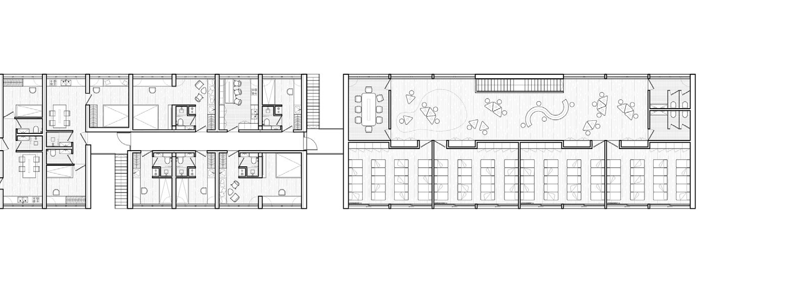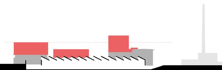 09 | 10 Uferhallen | Master-Abschlussarbeit +18.200 +14.900 +11.600 +7.530 Wohngruppe Ost Grundriss + Ansicht