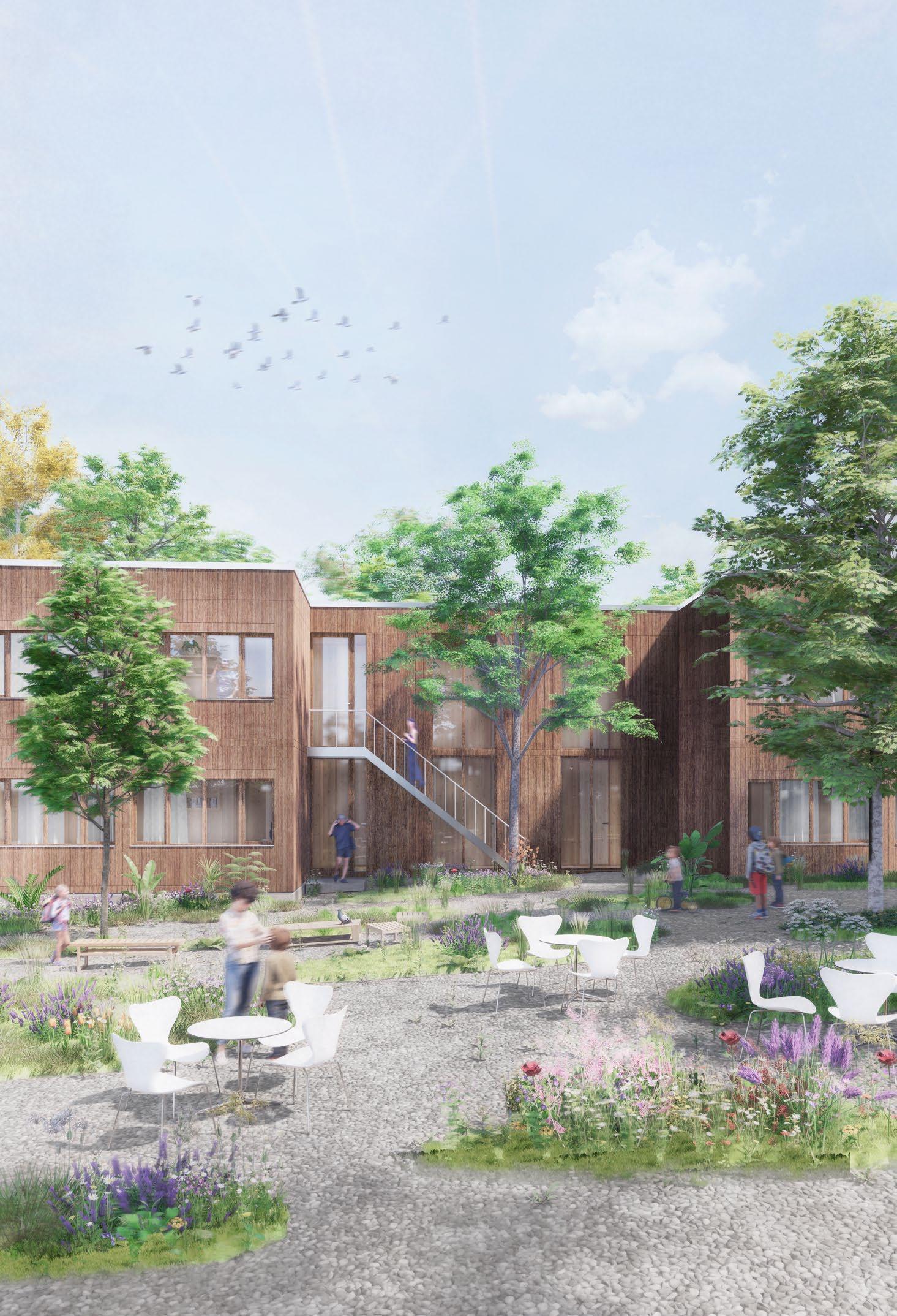 Bei einer Hanglage von 6 Prozent sind die neuen Gebäude so konzipiert, dass sie sich sanft an die Topografie anpassen.