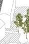 Balconies and private gardens are located on the courtyard side. The courtyard is elevated one floor above the street façade, creating a clear distinction in privacy levels. This elevation follows the natural topography, minimizing excavation and preserving the existing terrain.