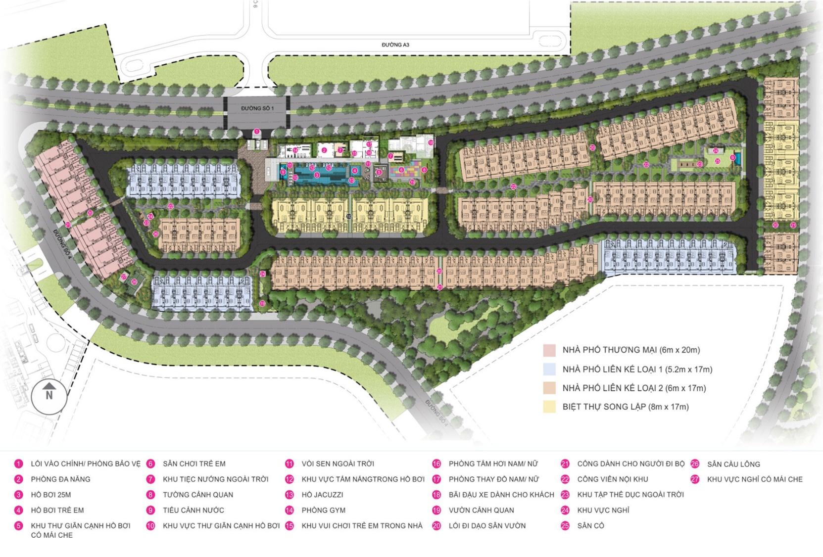Loại hình sản phẩm: Shophouse, Nhà phố liền kề, Biệt thự song lập và Biệt thự đơn lập