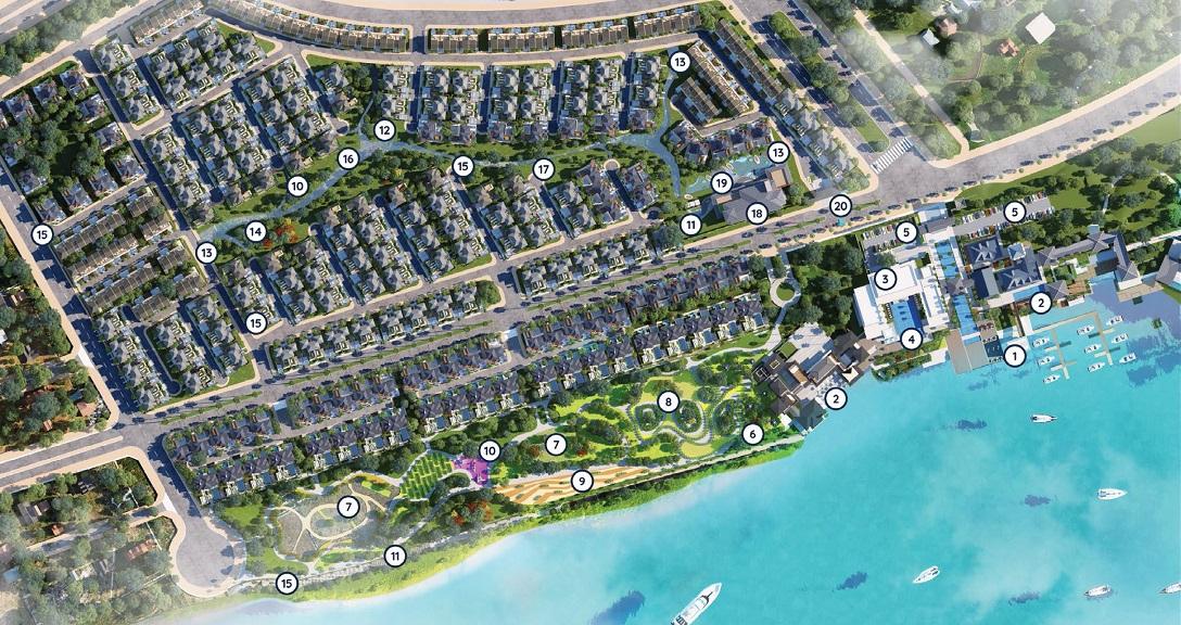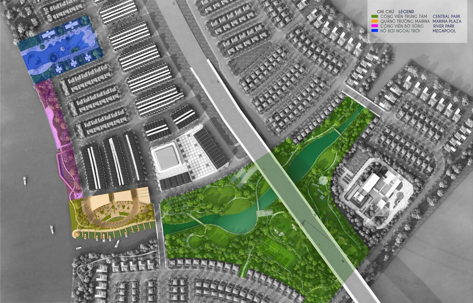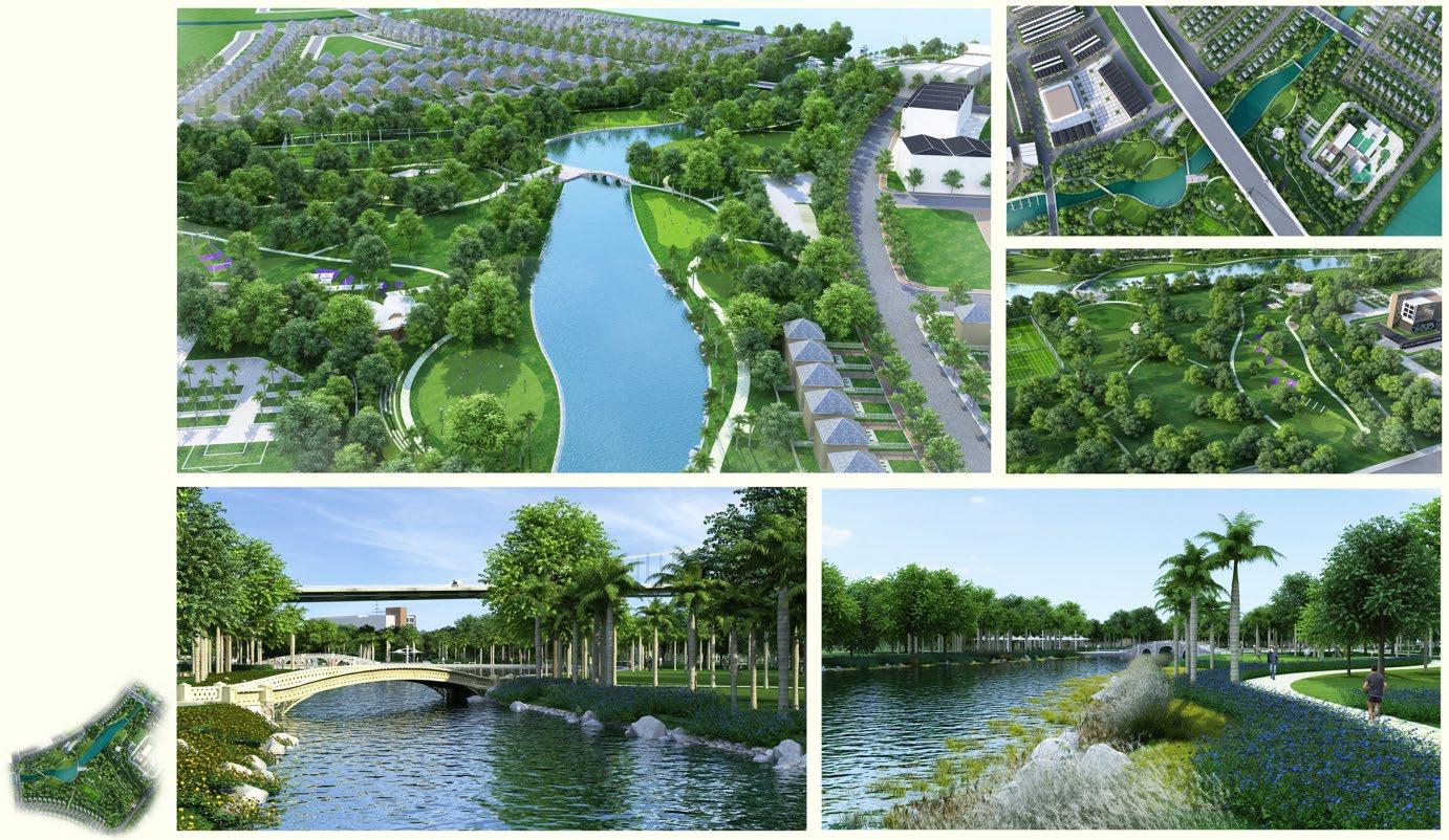 Tiện ích: clubhouse, bến thuyền Kayak, hồ bơi, game center, trường học, bệnh viện, trung tâm thương mại, đường dạo ven sông, vườn