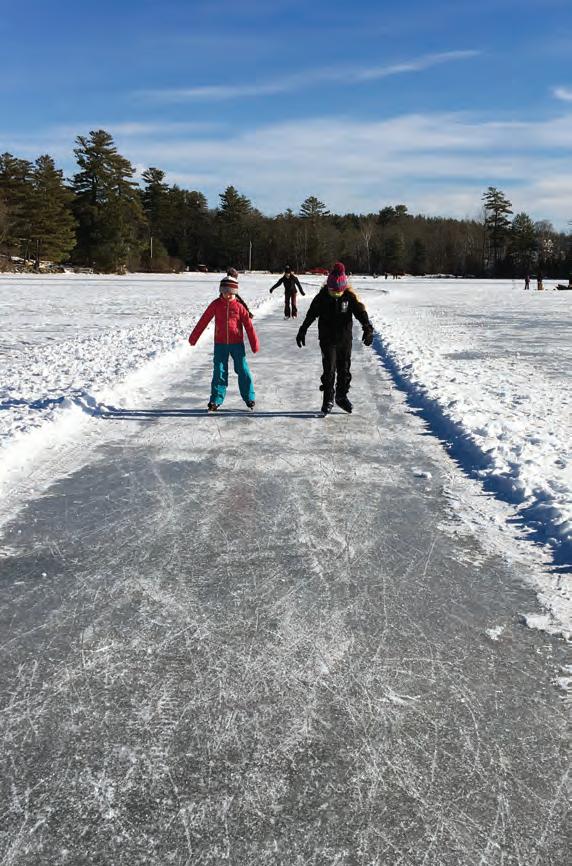 When lakes and ponds freeze over, oppor tunities abound to get out and enjoy ever ything winter has to offer, whether you ’ re on sk ates, sk is, or snowshoes.
