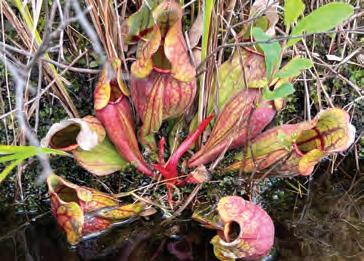 Paddling into the bog or to be correct, f e n r e v e a l s a w i l d k i n g d o m o f o p e n water, floating peat, sphagnum mosses, pitcher plants, sundew, sedges, and cotton g r a s s , s u r r o u n d e d b y m o u n t a i n v i e w s .