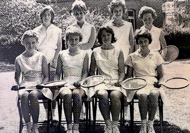 Tennis team: Sue is in the front row on the left and Jan is in the back row on the right.