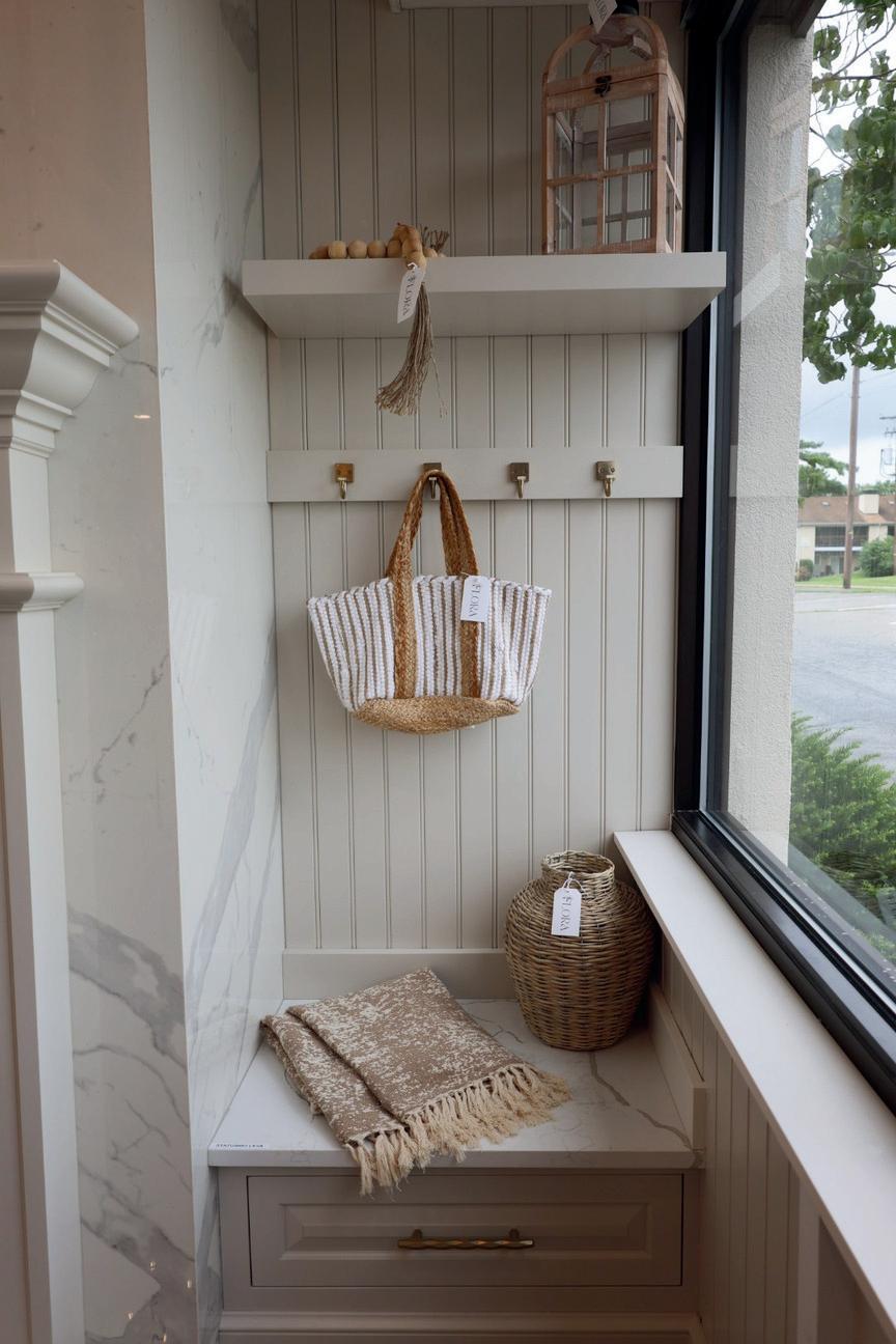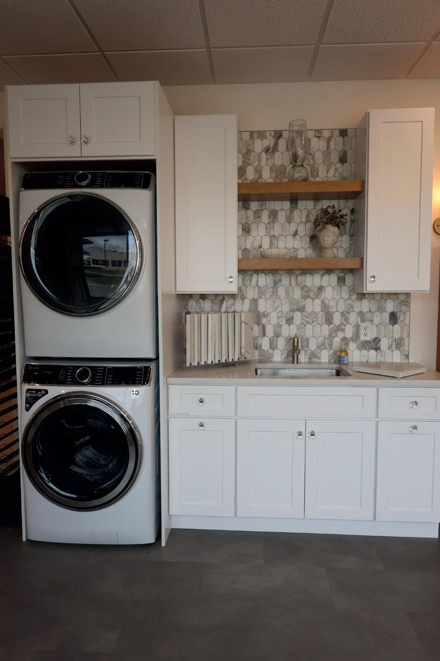 Our showroom is designed to spark inspiration and simplify the selection process. Here, clients can explore fullsize displays, feel materials firsthand, and sit down with our team to start shaping their vision. It features a kitchen display, custom cabinetry, countertops, and an extensive range of flooring, tile, plumbing fixtures and lighting options. You’ll also find cabinetry hardware, sinks and curated finish selections all in one place. We showcase large format porcelain slabs— perfect for sleek, grout-free shower walls and modern fireplace surrounds. In addition, we specialize in custom closets, offering everything from adjustable closet systems to fully tailored millwork designed around your unique storage needs.