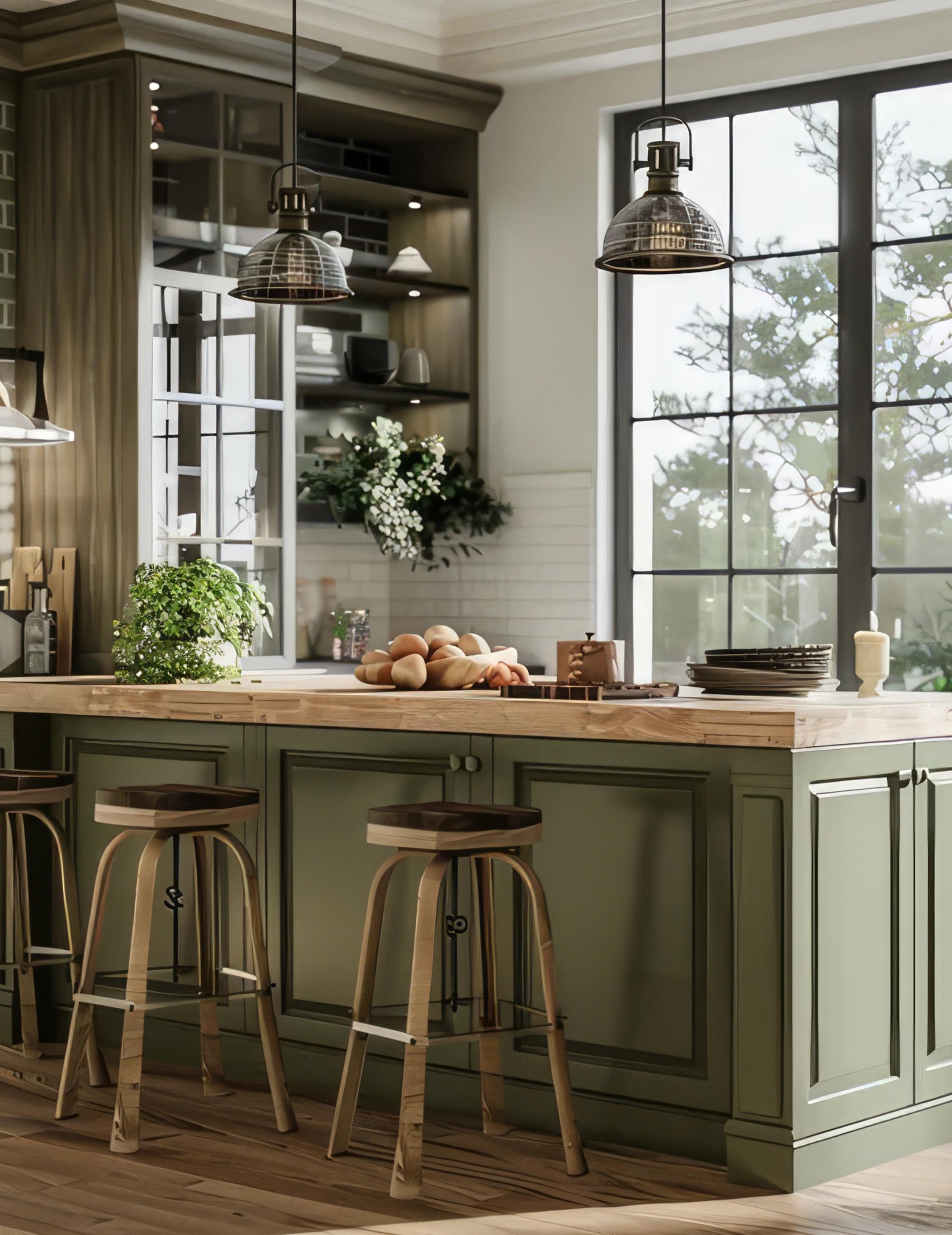 Even though minimalist kitchens are still popular and while we all hope to hide clutter, bringing in personal touches can mean veering away from the allwhite kitchen and diving into color! In 2025 kitchens, you’ll see color palettes highlighted by terra cotta, rich blue, and deep green popping up in backsplashes, cabinets, and wall paints. And adding features bringing nature to mind adds to the latest and greatest in kitchen design.