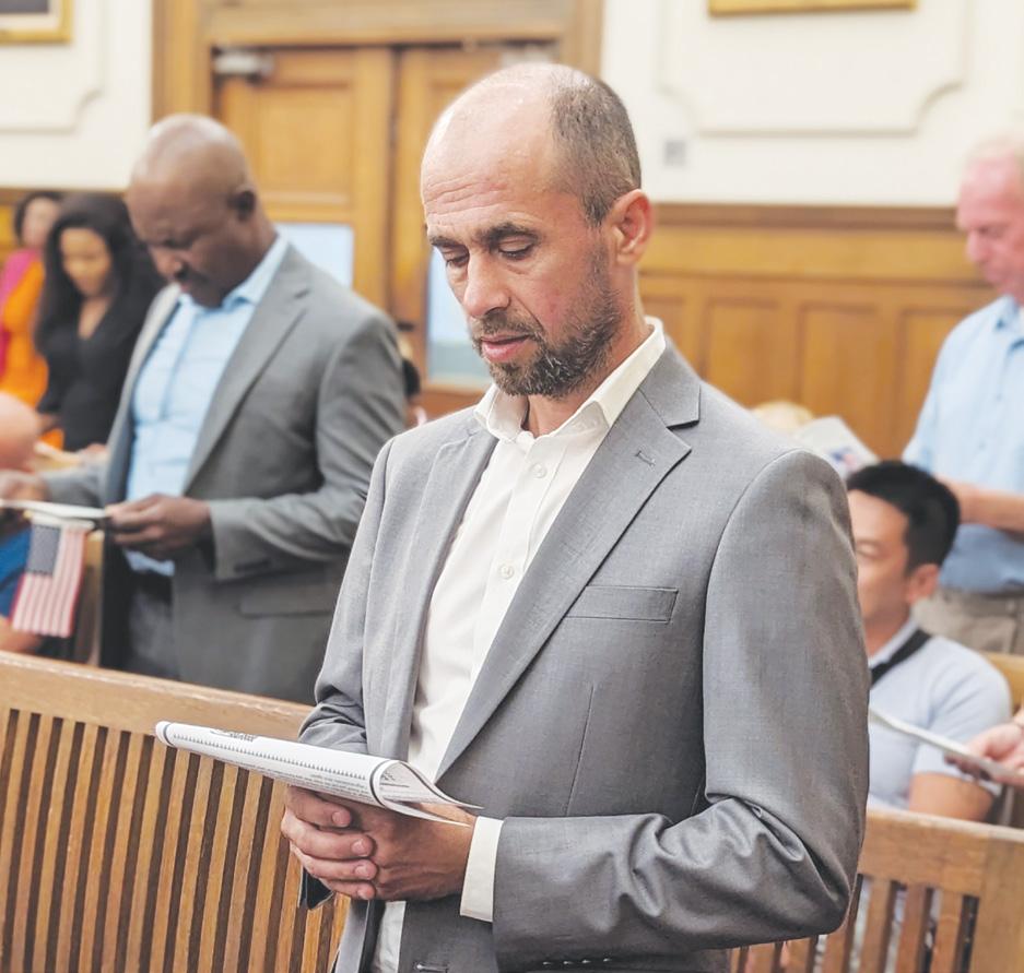 On August 15, 2023, the MBA’s American Citizenship & The Law Committee partnered with the Montgomery County Court of Common Pleas and the Montgomery County Prothonotary’s Office to admit 40 candidates for naturalization as citizens of the United States of America. The ceremony was held in Courtroom A of the Montgomery County Courthouse and was presided over by The Honorable Melissa S. Sterling. Committee Vice-Chair and Montgomery County Prothonotary Noah Marlier administered the Oath of American Citizenship.