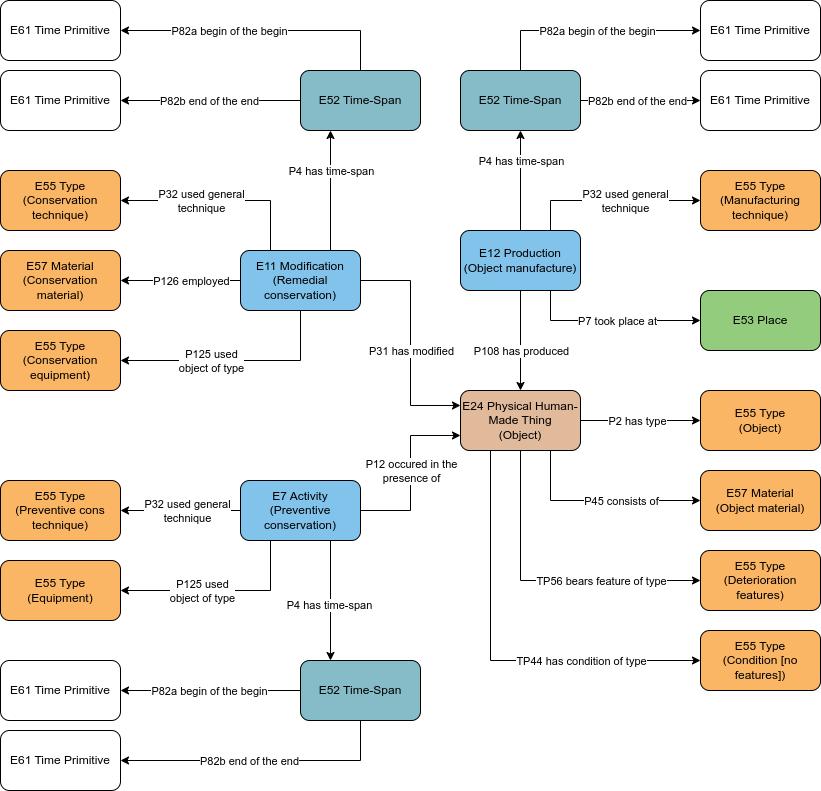 In simplified terms, and as I understand it, Velios centres the different conservation processes around the physical object and defines four main categ ories of conservation data: