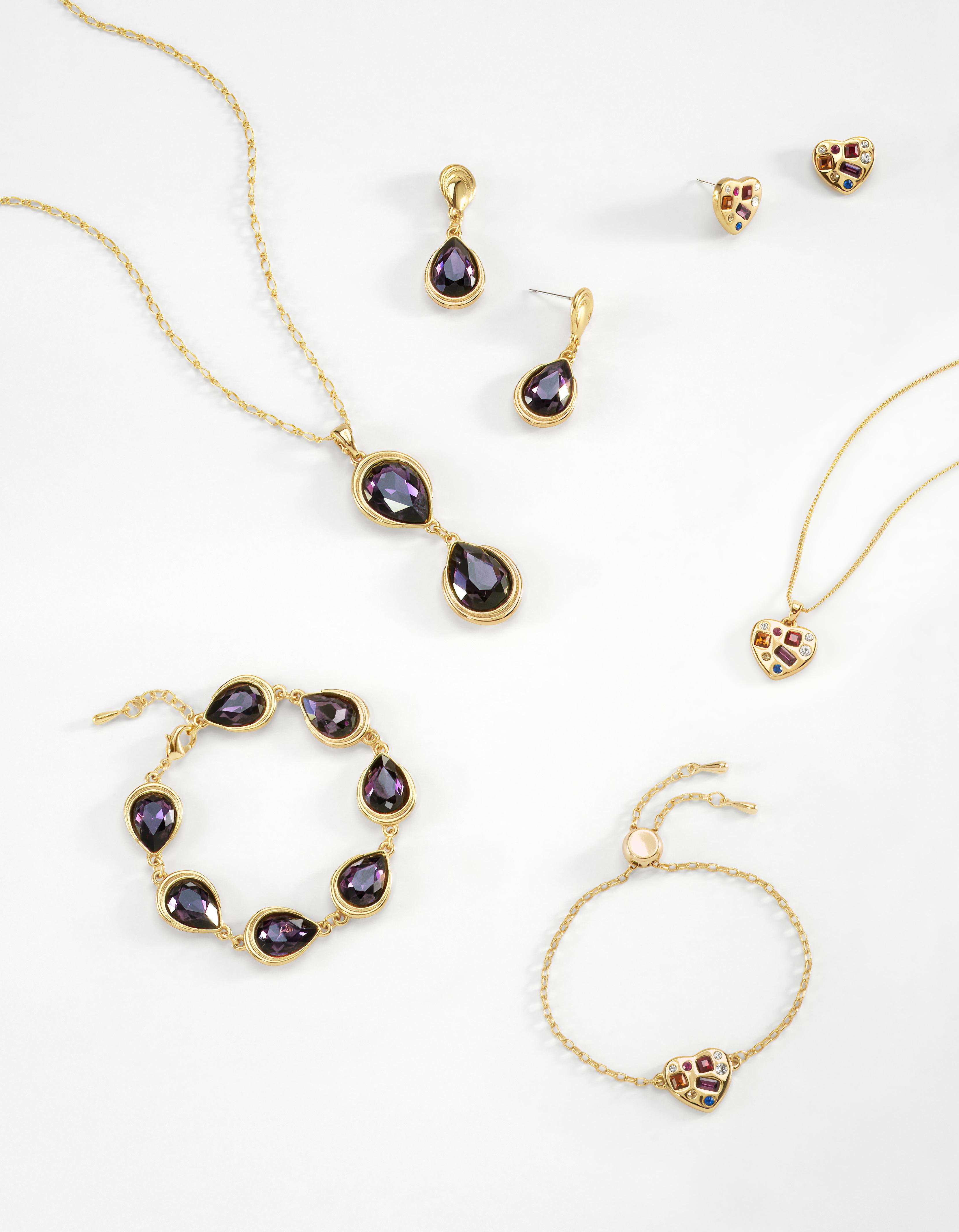 Piedras de cristal y/o Diamonice. Joyería con 4 baños de oro de 18 kilates, platino o cobalto. *El tono del color de las piedras o perlas puede variar.