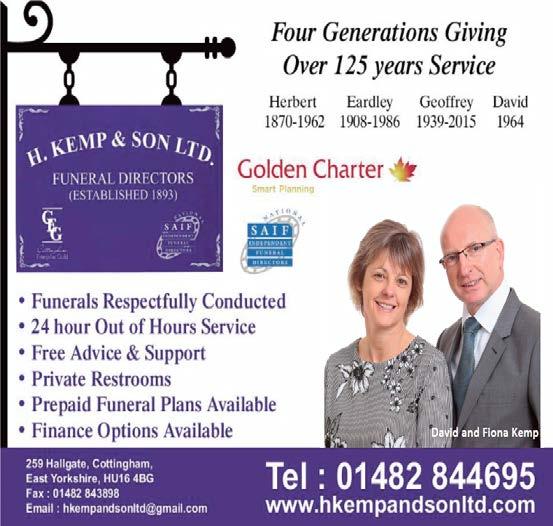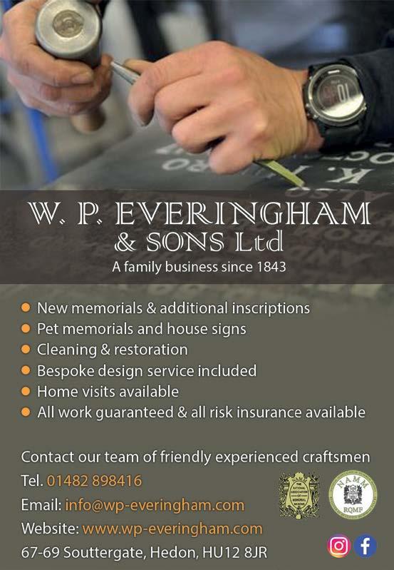 A ordable personalised services from Beverley’s longest established Funeral Director. Frank Stephenson & Son 29 Minster Moorgate, Beverley, East Yorkshire HU17 8HP 01482 881367 SERVING FAMILIES IN BEVERLEY FOR 150 YEARS *Pricing is correct at time of going to print and is subject to change. dignityfunerals.co.uk/local Proud to be a Dignity Funeral Director, providing exceptional services to families across the UK. FRANK STEPHENSON & SON Taking the greatest care in and around Beverley Unattended Funerals from £995 Attended Funerals from £1,620 Scan with your phone to visit our website