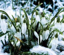 the early arrival of the snowdrop, often when snow is on the ground and conditions deter other bulbs from showing their heads. The snow, desperately seeking a colour to call its own, was snubbed by the more colourful plants not wishing to be associated with something so cold and unpleasant. Taking pity on it, the snowdrop allowed it to adopt its colour, white. In gratitude, the snow protected it from the rigours of the cold and frost, a symbiotic relationship that has existed ever since.