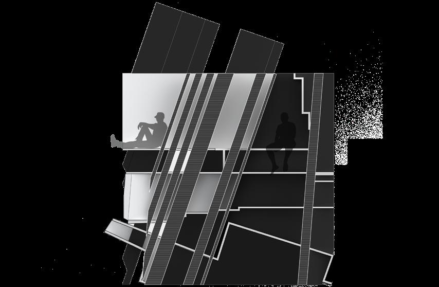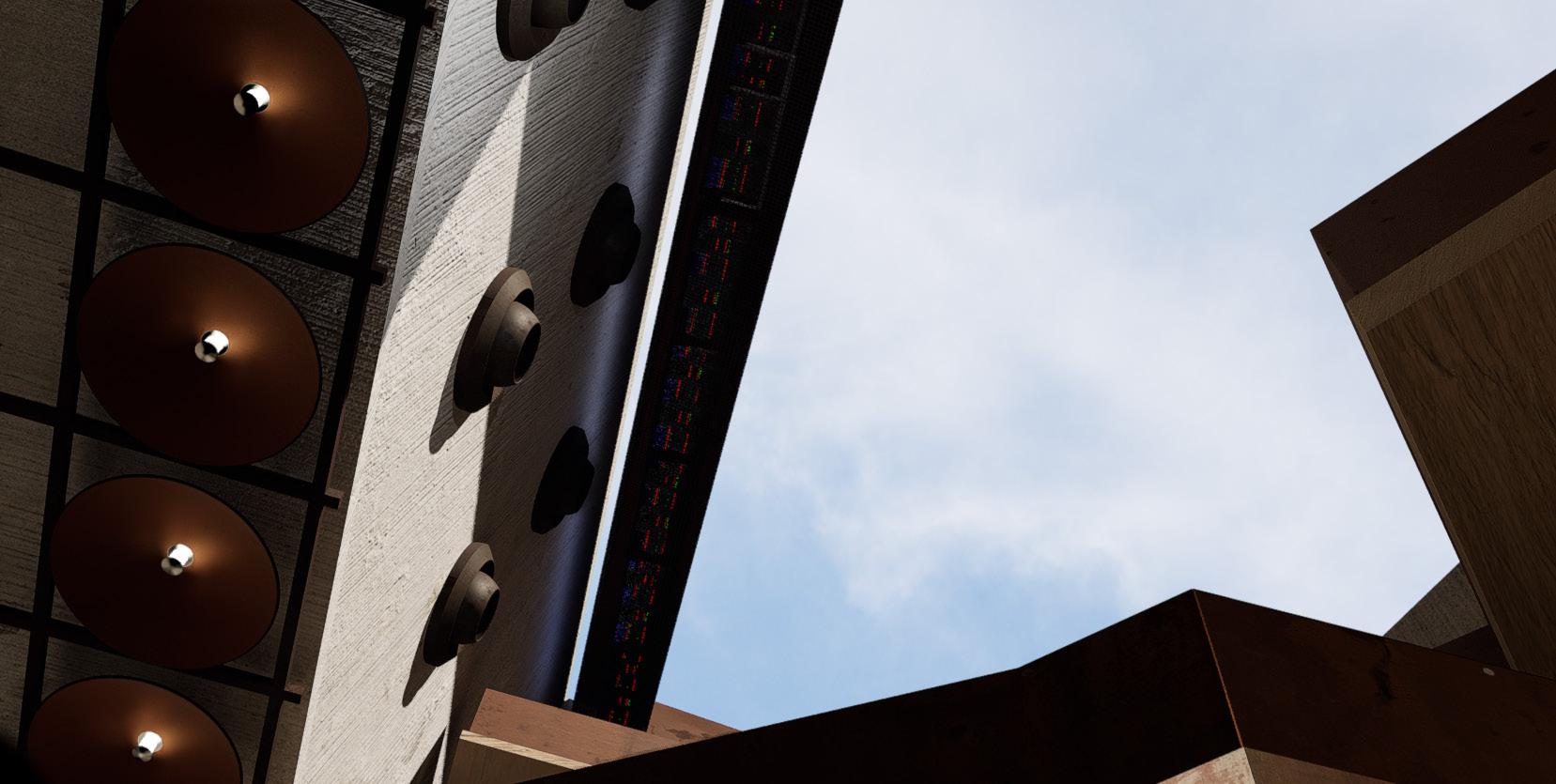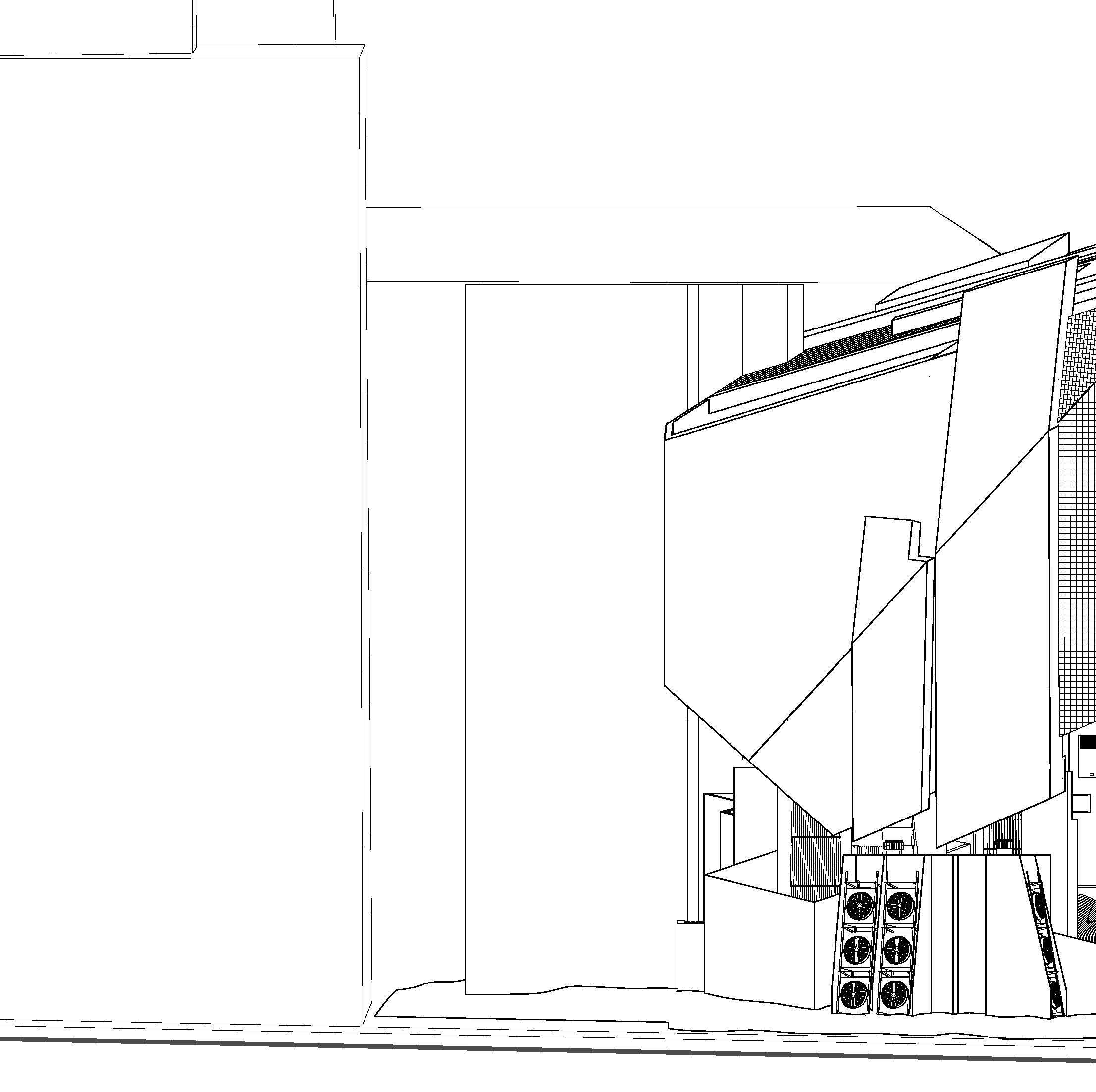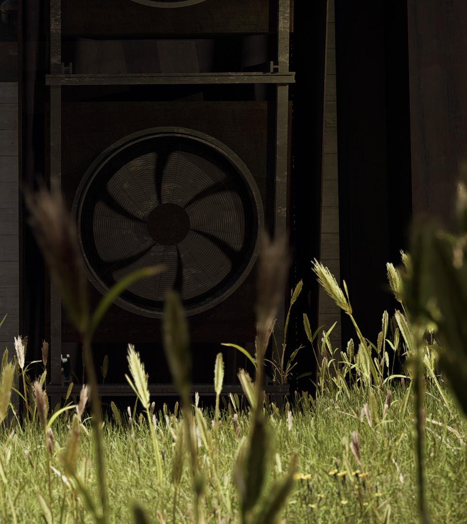 BALANC3 explores the ever growing conversation between analogue and digital, highlighting the potential co-existence of our digital and analogue realities. Located in Downtown Los Angeles, The structure acts as both a library and data center. The architecture of the structure is a documentation of how we know analogue and digital. The analogue expresses freedoms, artistic inefficiencies, and flaws. The digital; restriction, maximum efficiency, and beyond physical form. BALANC3 focuses on spaces that allow for the two to not only affect each other but encourage a harmonized spatial conversation in program and experience. The most prominent of such is the use of infrastructure. Clearly visible in the garden, where the massive Infrastructure of the data center, HVAC, and cooling systems not only line the walls but in some cases act as sculpture and spatial objects. But furthermore to be seen as an object of beauty in the same way a flower from a typical garden is seen and felt. Serenity not created by the gentle breeze or by a flower field, but rather a garden of slow spinning fan blades, and the gentle humming of the HVAC.