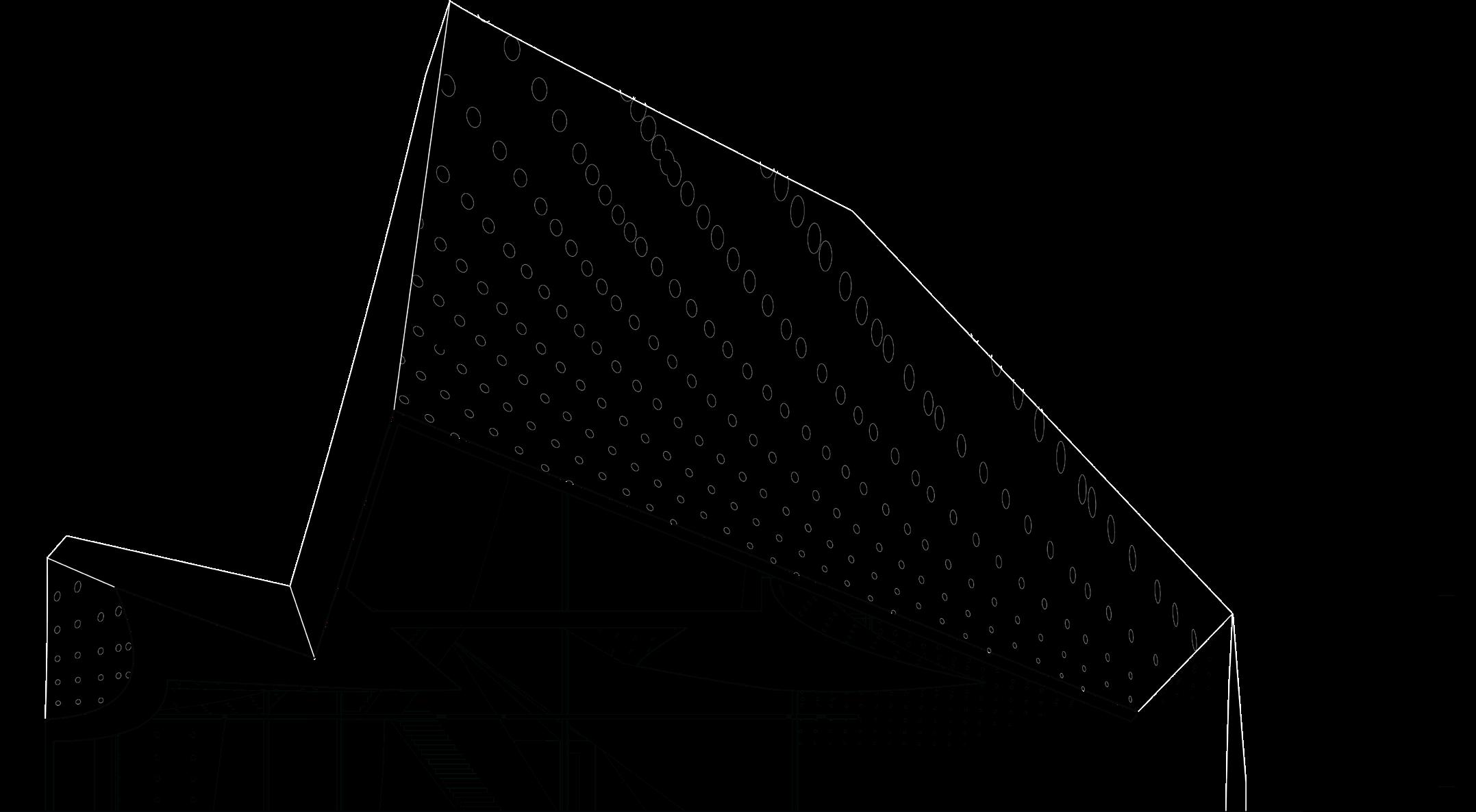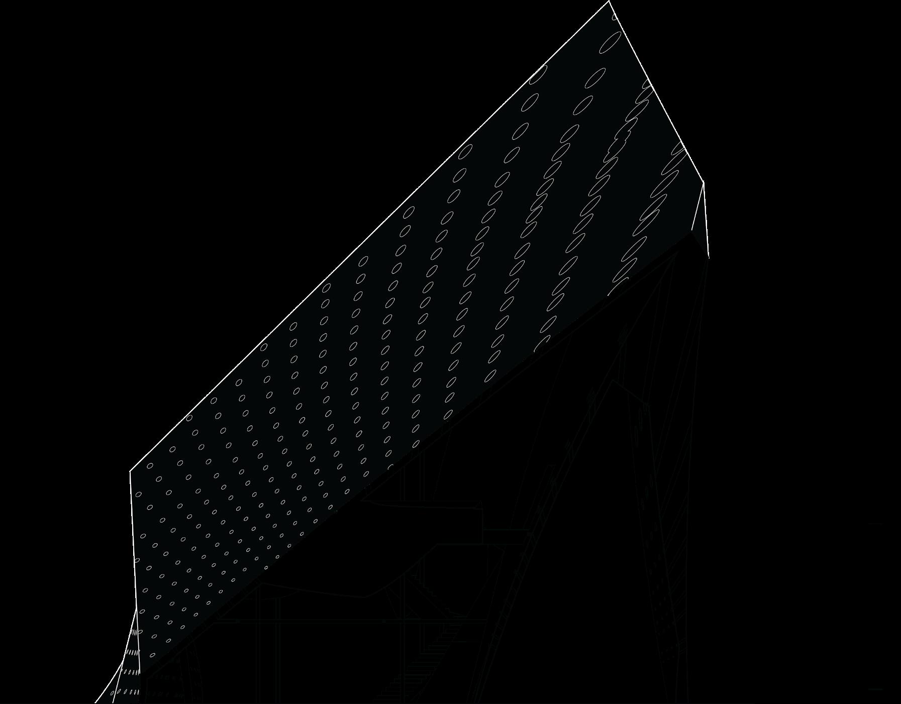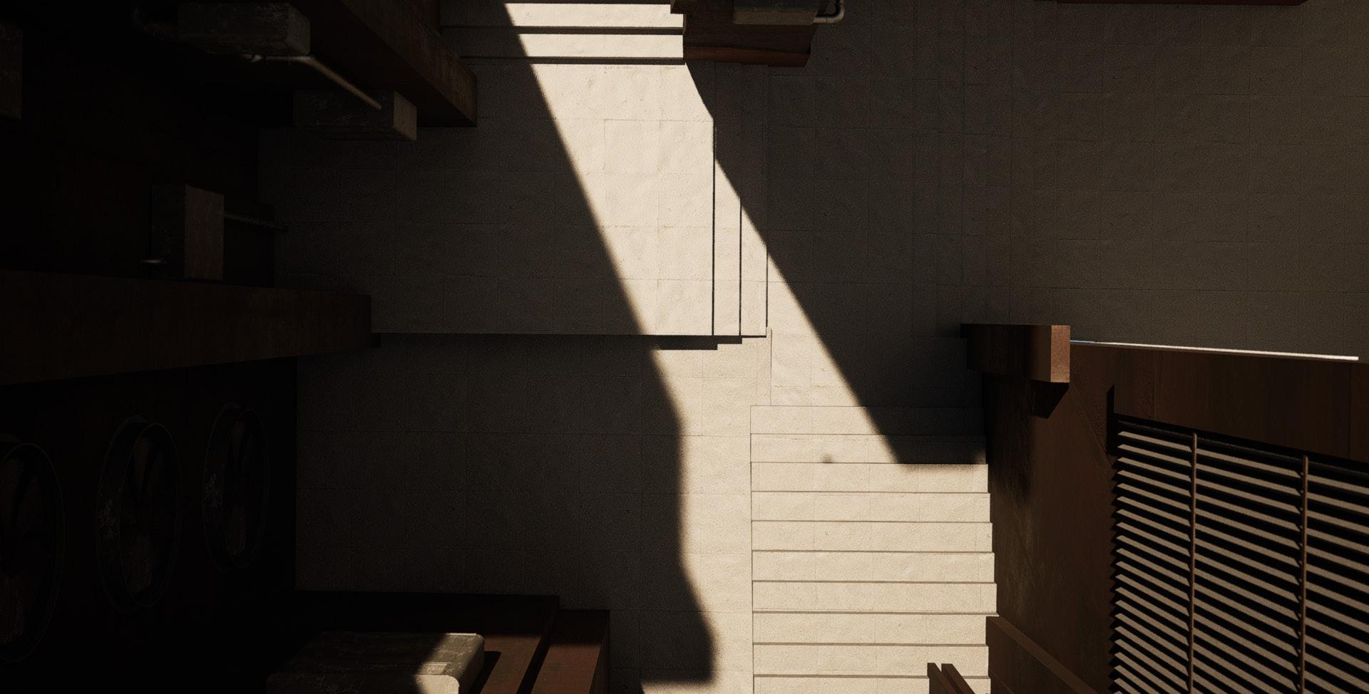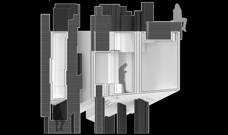 BALANC3 explores the ever growing conversation between analogue and digital, highlighting the potential co-existence of our digital and analogue realities. Located in Downtown Los Angeles, The structure acts as both a library and data center. The architecture of the structure is a documentation of how we know analogue and digital. The analogue expresses freedoms, artistic inefficiencies, and flaws. The digital; restriction, maximum efficiency, and beyond physical form. BALANC3 focuses on spaces that allow for the two to not only affect each other but encourage a harmonized spatial conversation in program and experience. The most prominent of such is the use of infrastructure. Clearly visible in the garden, where the massive Infrastructure of the data center, HVAC, and cooling systems not only line the walls but in some cases act as sculpture and spatial objects. But furthermore to be seen as an object of beauty in the same way a flower from a typical garden is seen and felt. Serenity not created by the gentle breeze or by a flower field, but rather a garden of slow spinning fan blades, and the gentle humming of the HVAC.