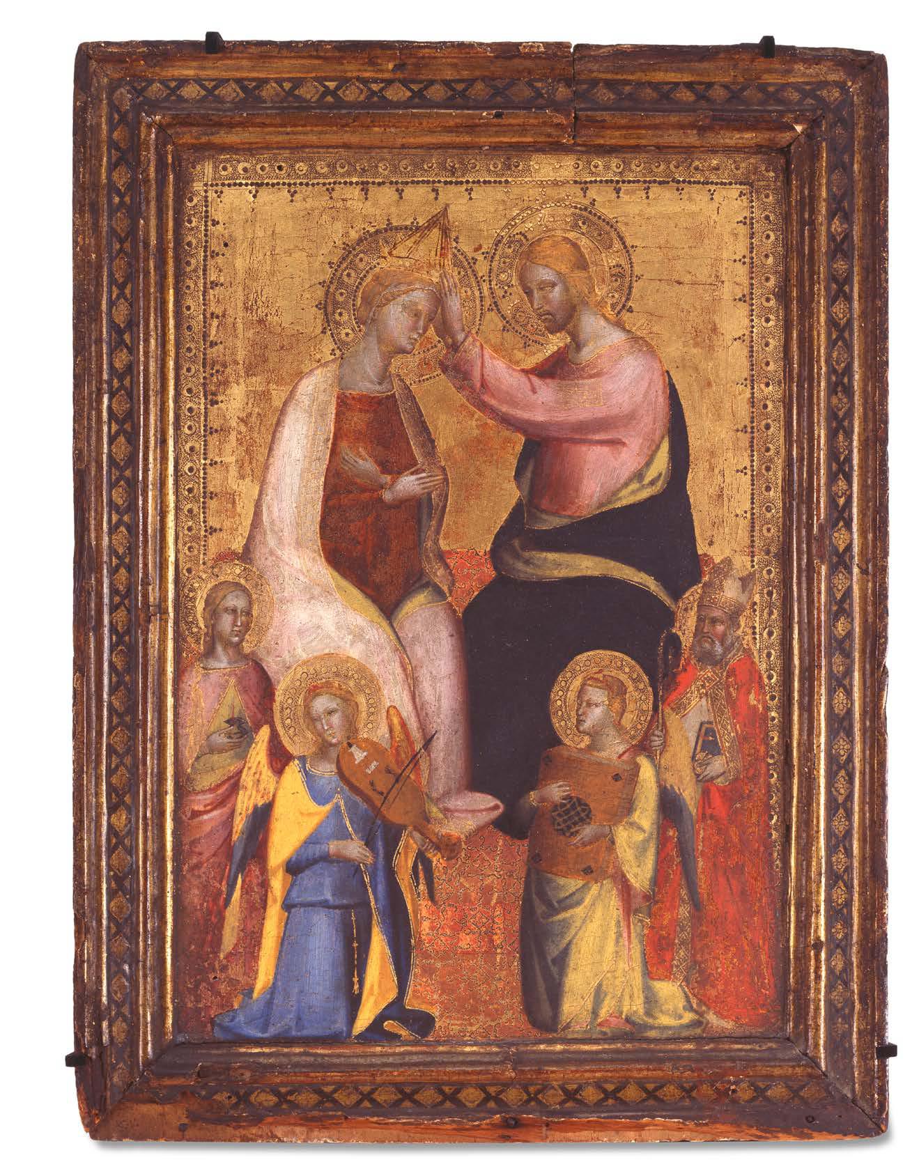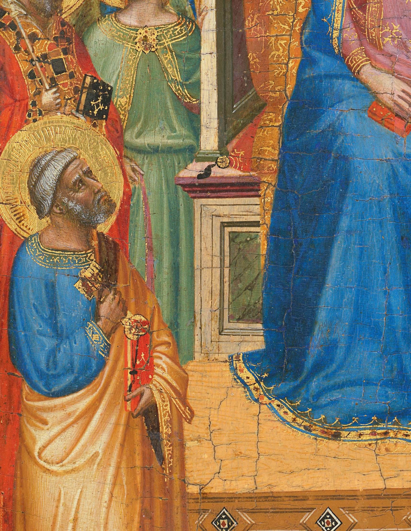Students of the period have historically held Bernardo Daddi in especially high regard. Raimond van Marle describes him as “one of the most re ned painters to be found in Florence in the early 14th century” while arguably the most distinguished scholar in the eld Richard O ner describes Daddi as “An artist of rare and exquisite gi(s…a master of supreme lyrical inspiration...(whose) lyricism suited a miniature rather than the monumental Gio esque mode of presentation.” e central part of this altarpiece is a perfectly preserved example of Daddi’s miniaturist style and so it is an honor for the gallery to be bringing such a remarkable work of art to the market.