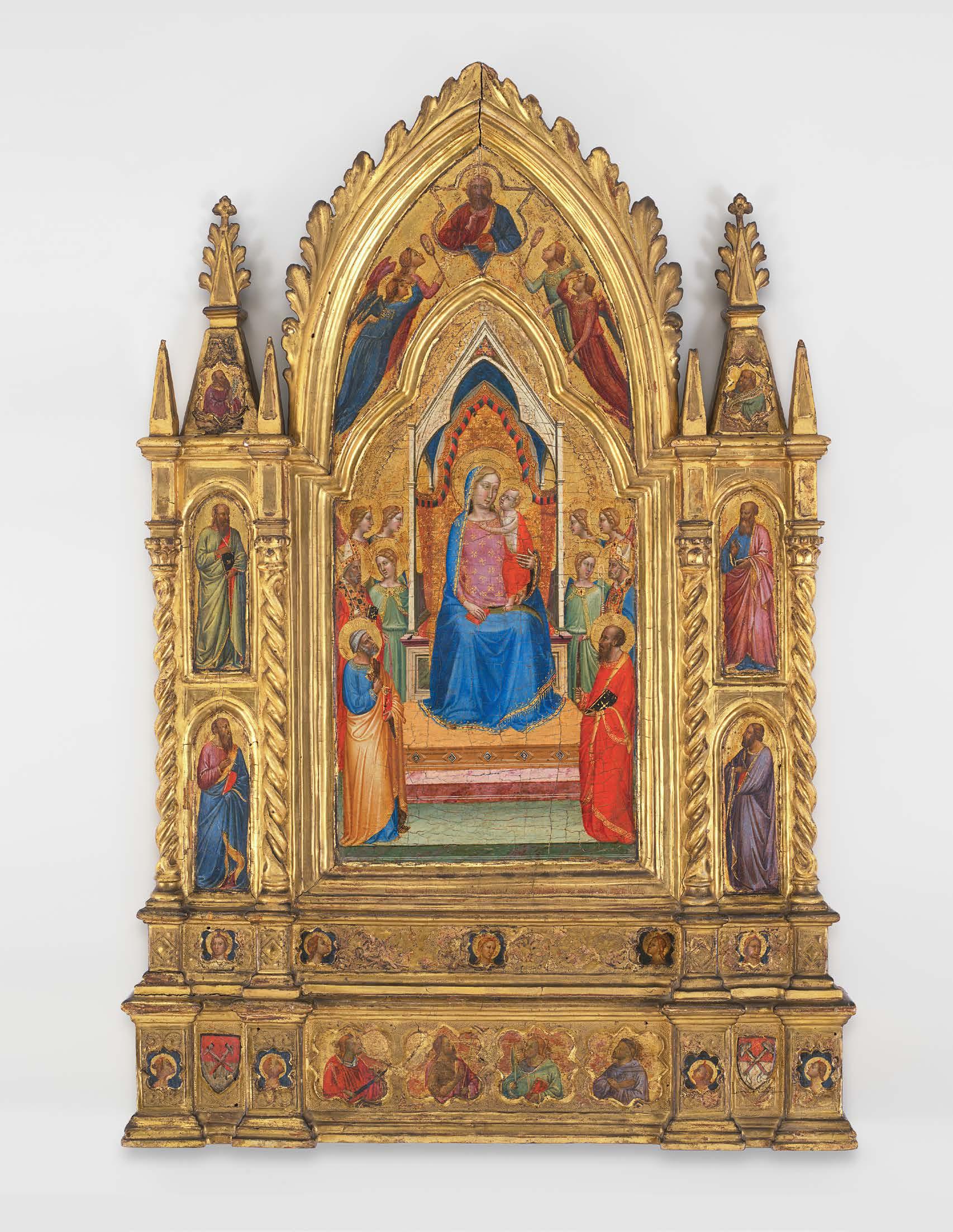 Bernardo Daddi and Master of the Misericordia, Madonna and Child Enthroned with Saints and Angels, 1335–37, recon gured ca. 1380. Private Collection