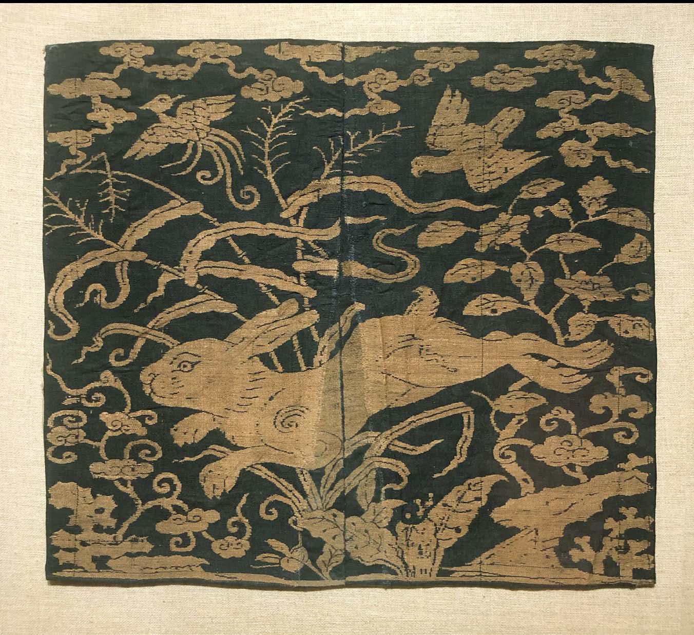 A prominent feature in the paintings of Bernardo Daddi was this decorative use of textiles, both as vestments worn by the protagonists and as a cloth of honor, draped over the throne and/or behind the main figure, usually the Virgin Mary. e technique involved the painting of a pa ern in mordant (a glue-like substance) with a fine squirrel-hair brush over the colored fabric. Onto the mordant would be laid a thin layer of gold which would adhere, forming a gilded decoration in the pattern of the artist’s choice. Sometimes these would be abstract and geometric and sometimes they included repeated motifs such as grapevines, palmettes or birds. Florence derived much of its wealth in the fourteenth century from the fabric industry, so the attention paid by Bernardo Daddi to luxuriously embroidered silks would have been appreciated by his affluent audience. The silks depicted by artists such as Simone Martini in Siena and Bernardo Daddi in Florence were o(en inspired by actual textiles, either Hispano-Moresque or else originating in China and imported to Italy via the Silk Road or from replicas of Chinese embroidered silk manufactured since the twelfth century in Lucca. Early Italian inventories record Lucchese camacas woven with vines and grapes. e pa erns taken directly from imported Chinese textiles are often those woven with calligraphically rendered birds and plants ( g. 9), both of which were auspicious images in China.