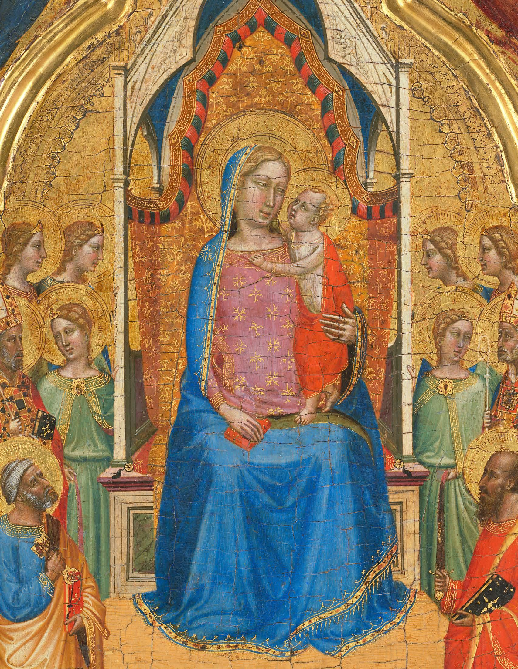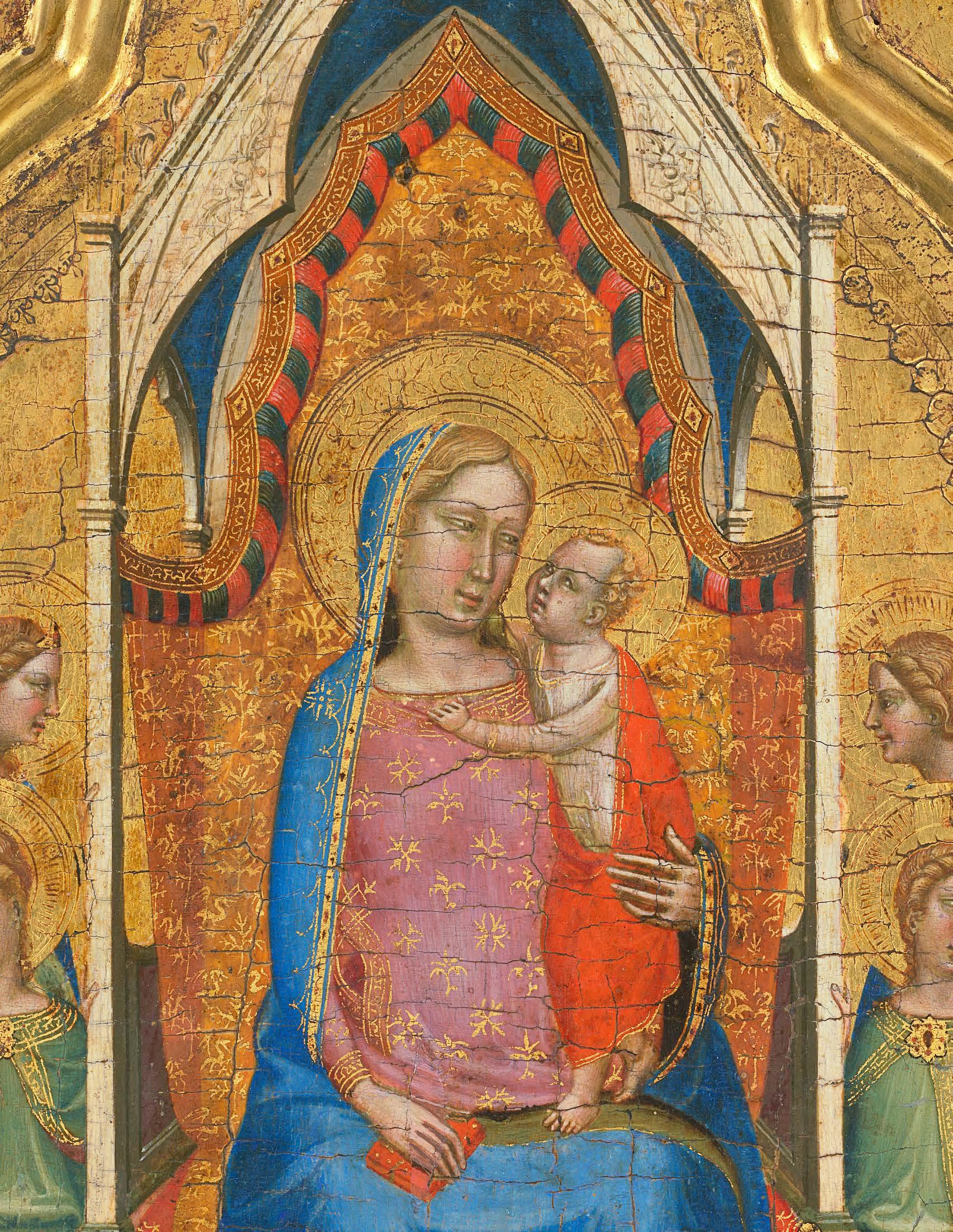 Bernardo Daddi, Madonna and Child Enthroned with Saints and Angels, detail: center panel