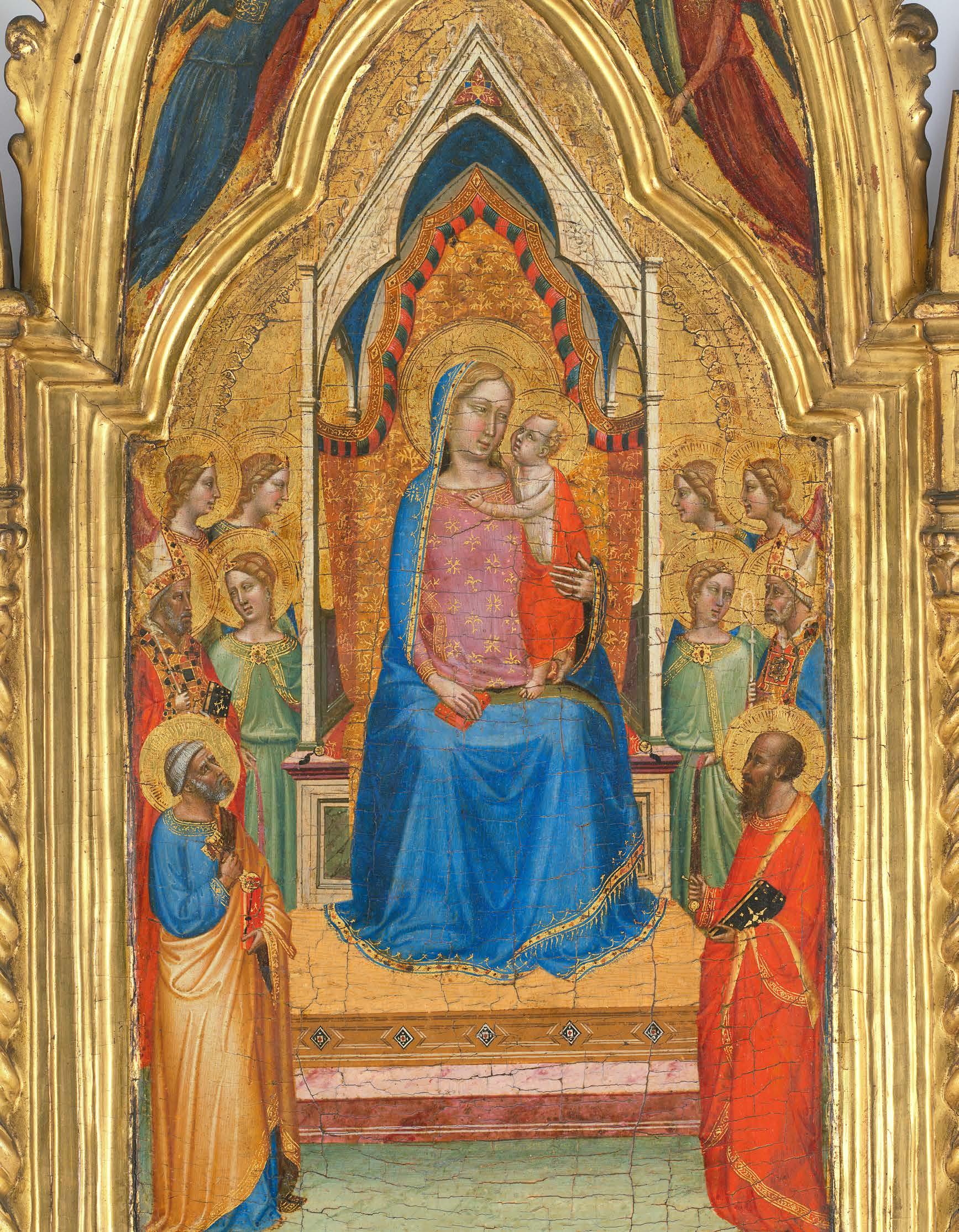 Madonna and Child Enthroned with Saints Peter and Paul , Saint Zenobius, a Bishop Saint and Six Angels, 1335–37 tempera and gold on panel, in an engaged frame