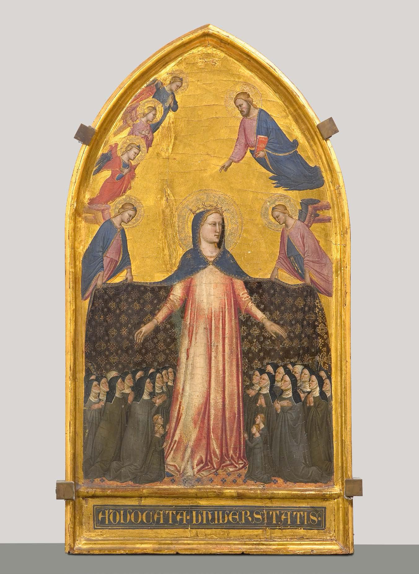 Master of the Misericordia, Madonna della Misericordia with Franciscan Tertiary Sisters; Christ Blessing and Angels, ca. 1365–70. Galleria dell’Accademia di Firenze, Florence