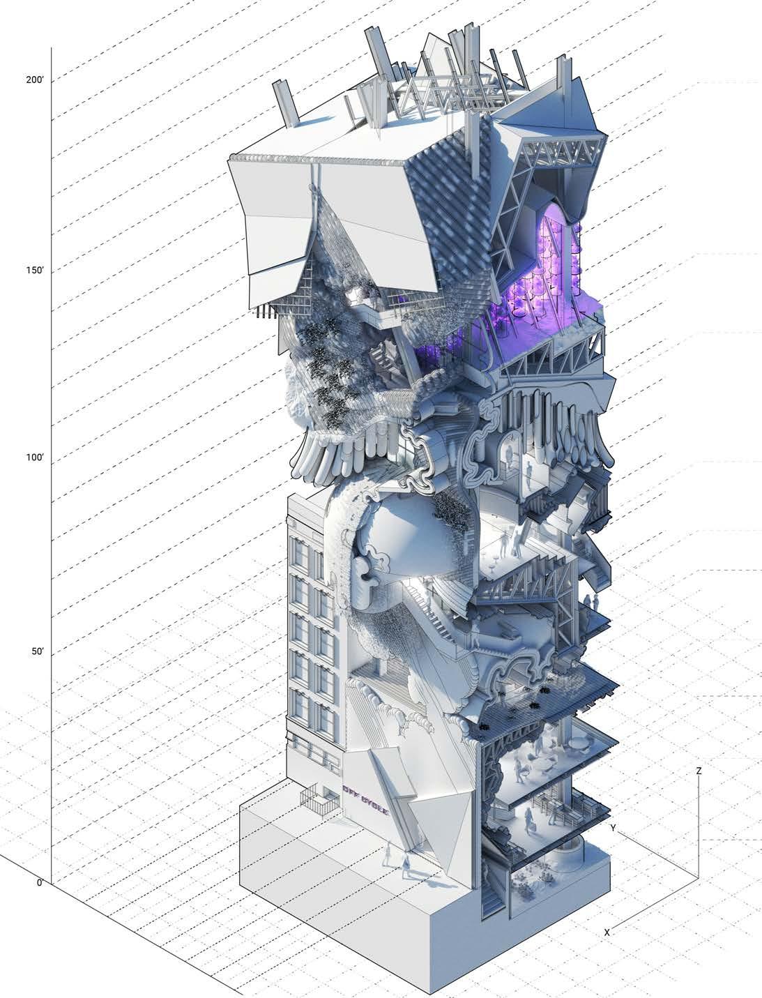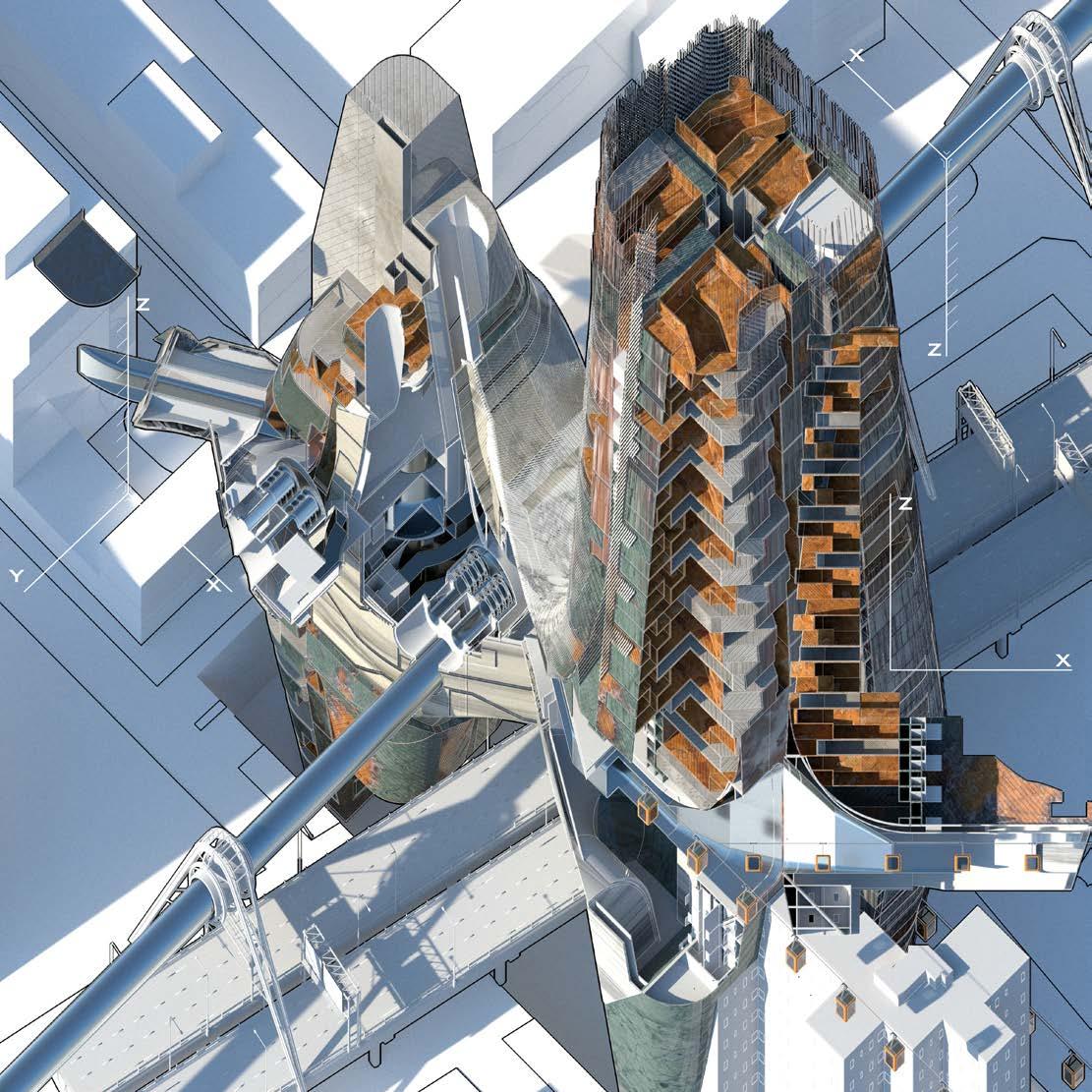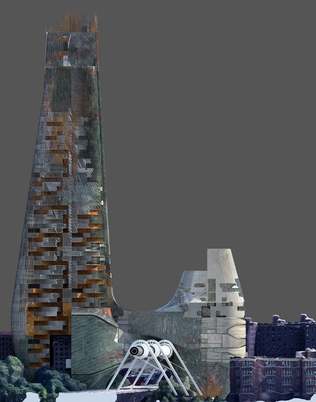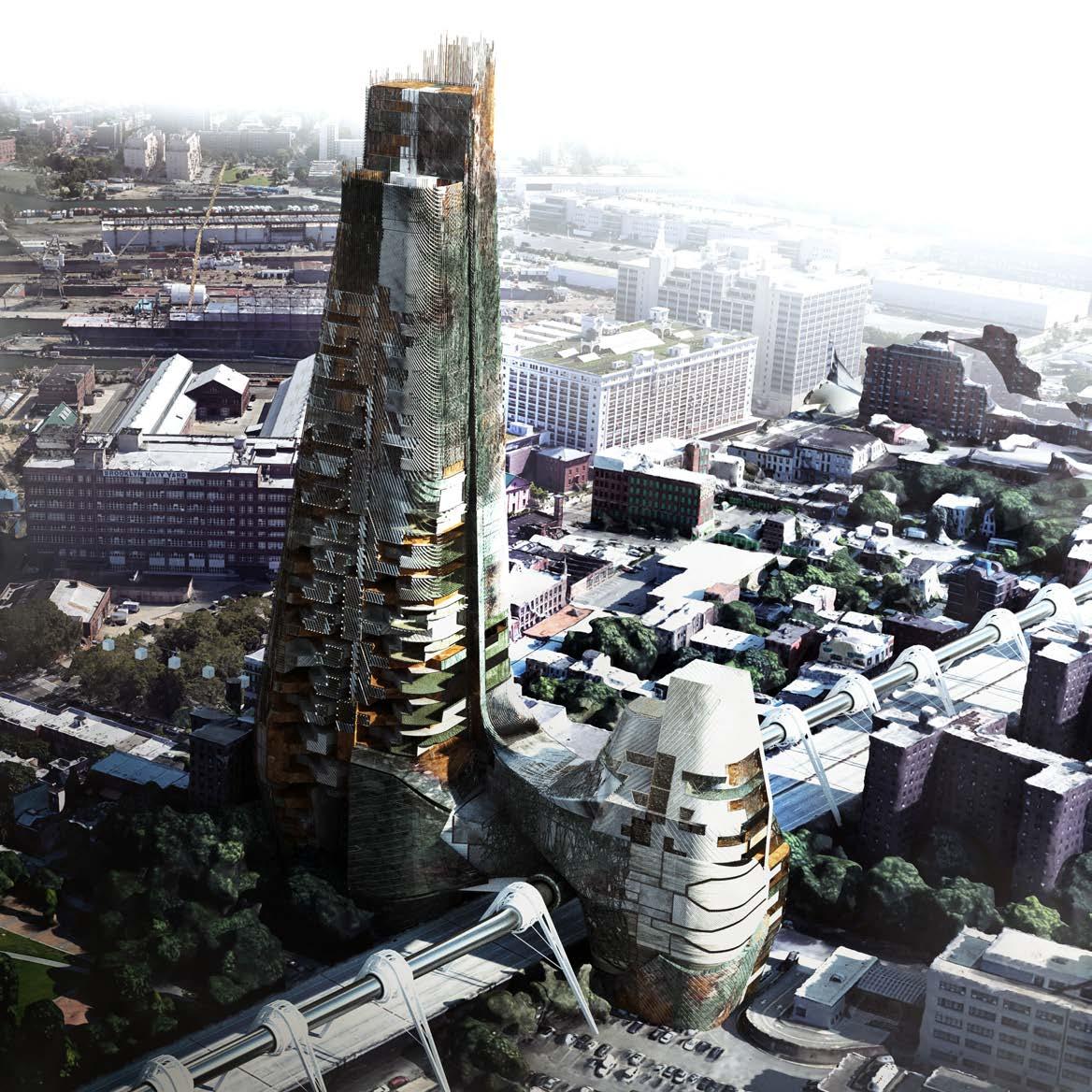Focusing on conditions of Hyper-density and infrastructure, The New York X, or NYX, is the result of synergy between the desire to create a high rise while defeating the possibility of gentrification as an outcome. Situated on NYCHA housing, between the Navy yard and BQE, this project dances with the BQE while remaining respectful of current residents in the social housing of 45 N. Elliott place. The outcome creates a central node of transportation to relieve pressure from the constant use of the BQE as well as create a one stop shop before Brooklyn grows and commuting becomes exceedingly more difficult. By routing multiple forms of transportation through this hub, stacking infrastructure on pre-existing infrastructure, commerce will commence, globally, locally and internally. The revenue produced will go directly to the current and new residents by paying for utilities as well as property taxes, creating fixed rent for decades. Since the fear of gentrification is incredibly relevant to the addition of high rises and luxury housing, this economic module can slow down the rates of displacement of socioeconomic classes, so as tax rates inevitably increase as Brooklyn grows, this can be avoided. If this economic model is viable, then a series of these can begin being constructed over current NYCHA housing, ultimately slowing the process of gentrification.