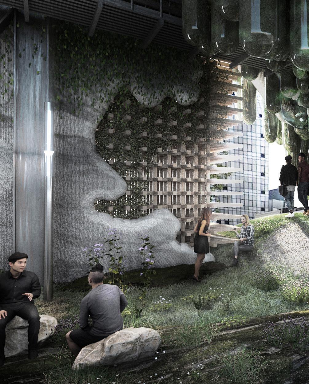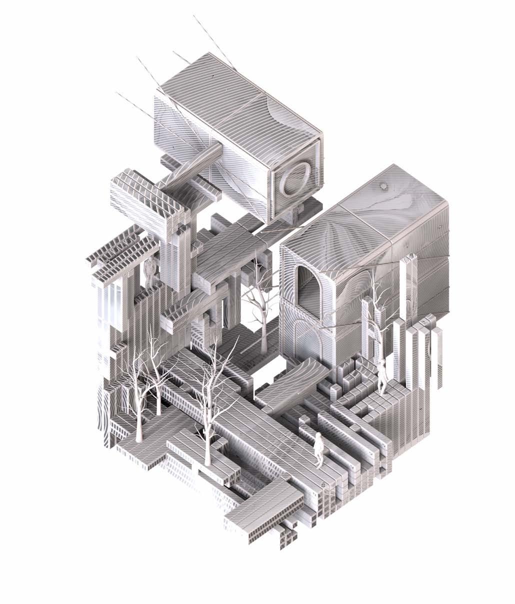 Focusing on the ecology of the surrounding site, special attention was given towards the mediation between flooding and the neighborhood of Manayunk, PA. By utilizing large blocks of mass, NEOTERIC begins to divide the site through indexical means, creating a series of spaces that span between public and private, a new campus. By situating the winery and incubator spaces atop a large plinth, which has been shifted off axis, these spaces are now out of reach in case of potential flooding, as well as using the plinth to provide a barrier to a large portion of Manayunk, mitigating against heavy surges of water. Outside of the performative plinth geometry, the division of site creates pockets of public space that can be utilized by various acts of assembly, creating spaces for the community, both on site and plinth, that can be shared by both a winery and private incubator space, avoiding the complete privatization of the site from the neighborhood.